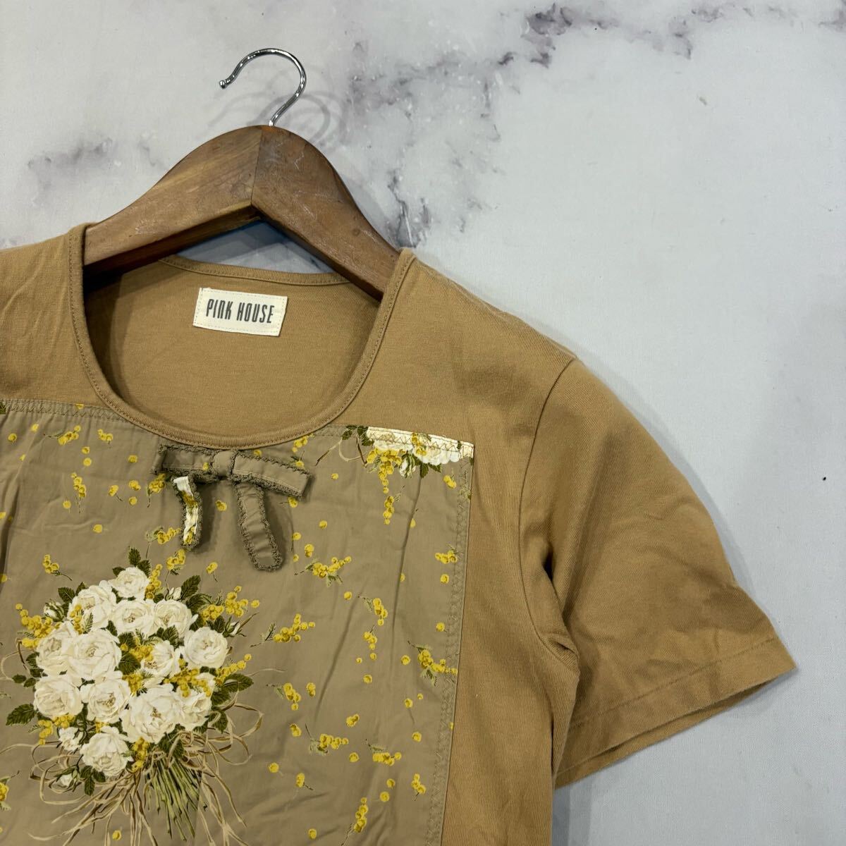 AZ ■ 日本製 '洗練されたデザイン' PINK HOUSE ピンクハウス 半袖 花柄 プリント Tシャツ カットソー 婦人服 レディース トップス 古着
