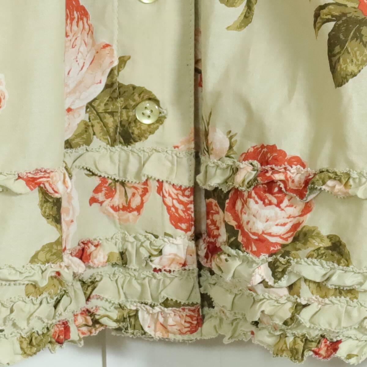 Product name: 【美品!】ピンクハウス★豪華!かぶせ段々フリル♪前開きローンスカート 薄緑系 エレガントな花柄♪z13794