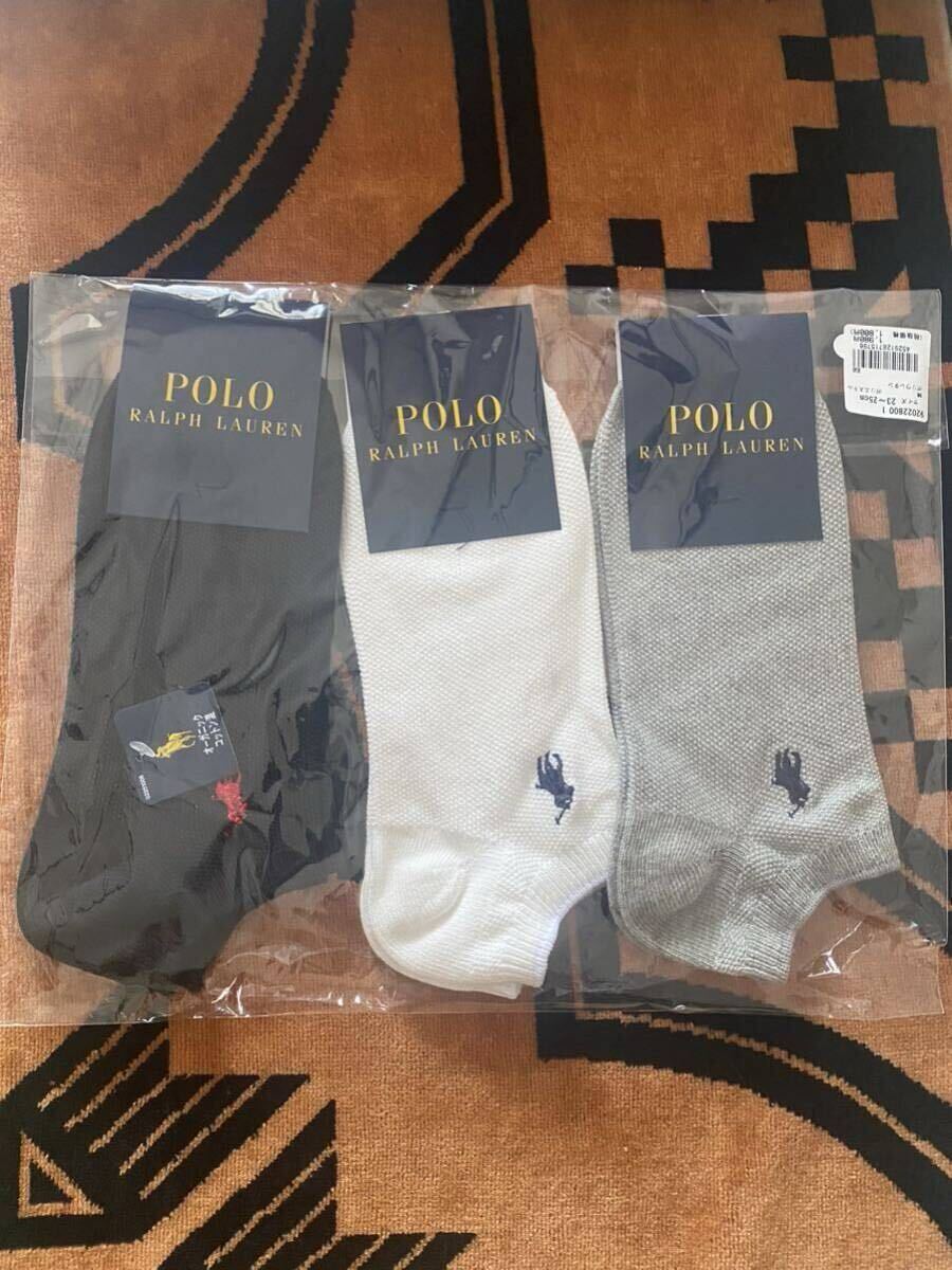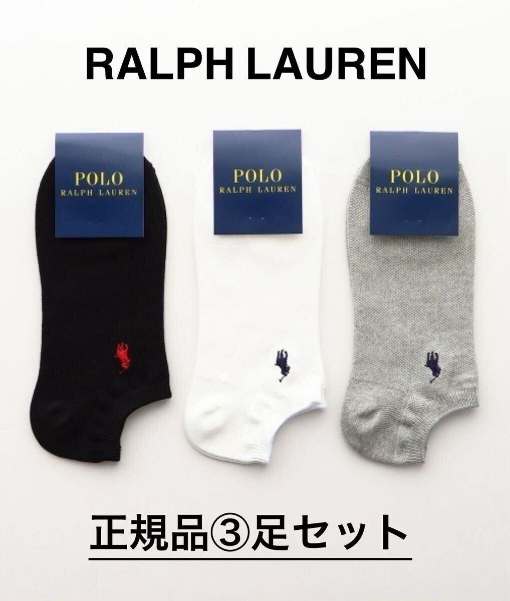 【送料無料】ラルフローレン 靴下 「3足セット」オーガニックコットン混 カノコ ワンポイント スニーカーソックス 3色23-25センチ