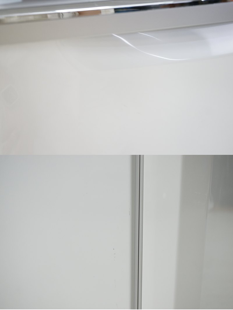使用に伴うヨゴレ・キズ、正面冷蔵室ドアにヘコミがございます。