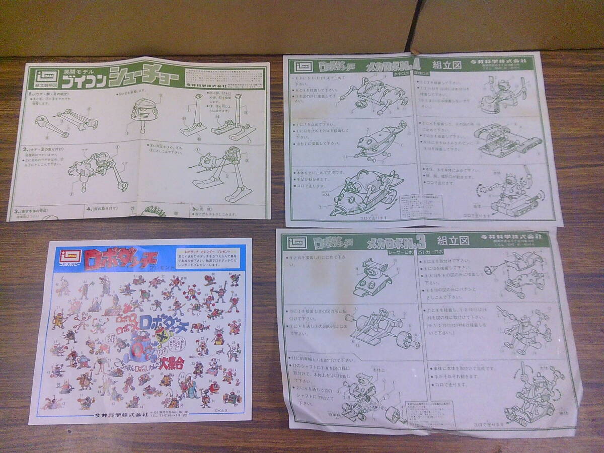 yy106【ロボダッチイマイ取説など4枚】「メカロボNo.3」「メカロボNo.4」「ブイコンシューチョー」「カレンダープレゼントチラシ」