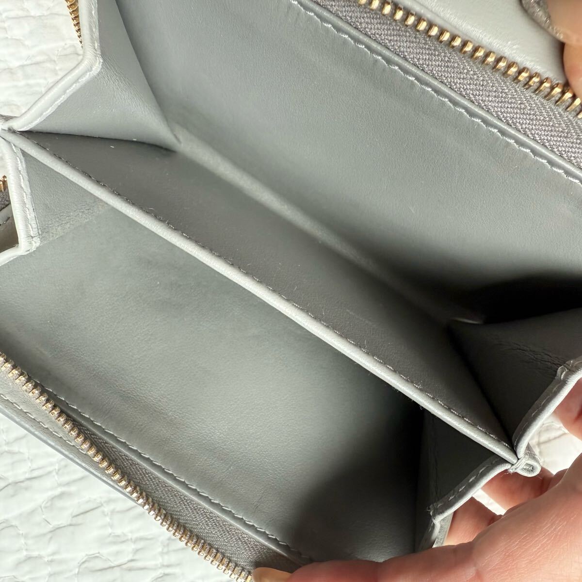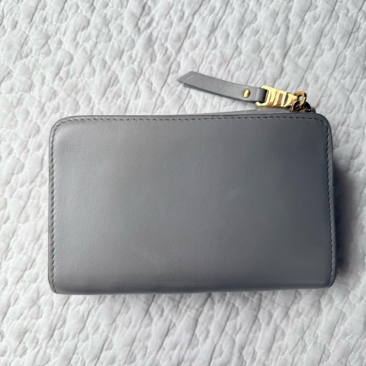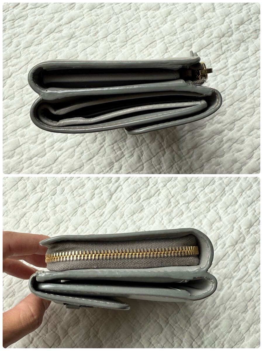 Product name: 美品 miu miu 三つ折り財布 リボン ミュウミュウ ロゴ レザー 牛革 グレー ゴールド金具 コンパクトウォレット レディース 5ML014