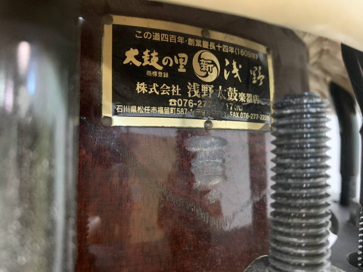 5781 太鼓の里 浅野太鼓 締太鼓 ボルト締め太鼓 附締太鼓 しめつけ太鼓 スタンド付き 打面30cm 厚み 24cm 大阪府摂津市東別府 手渡し可