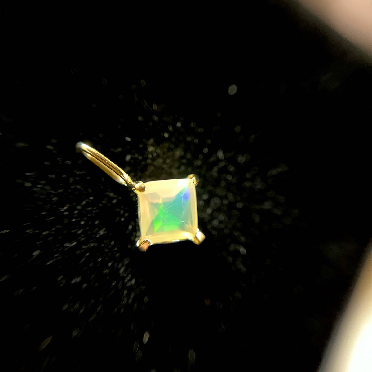 天然石オパールのスクエアカットのかわいいペンダントトップです。