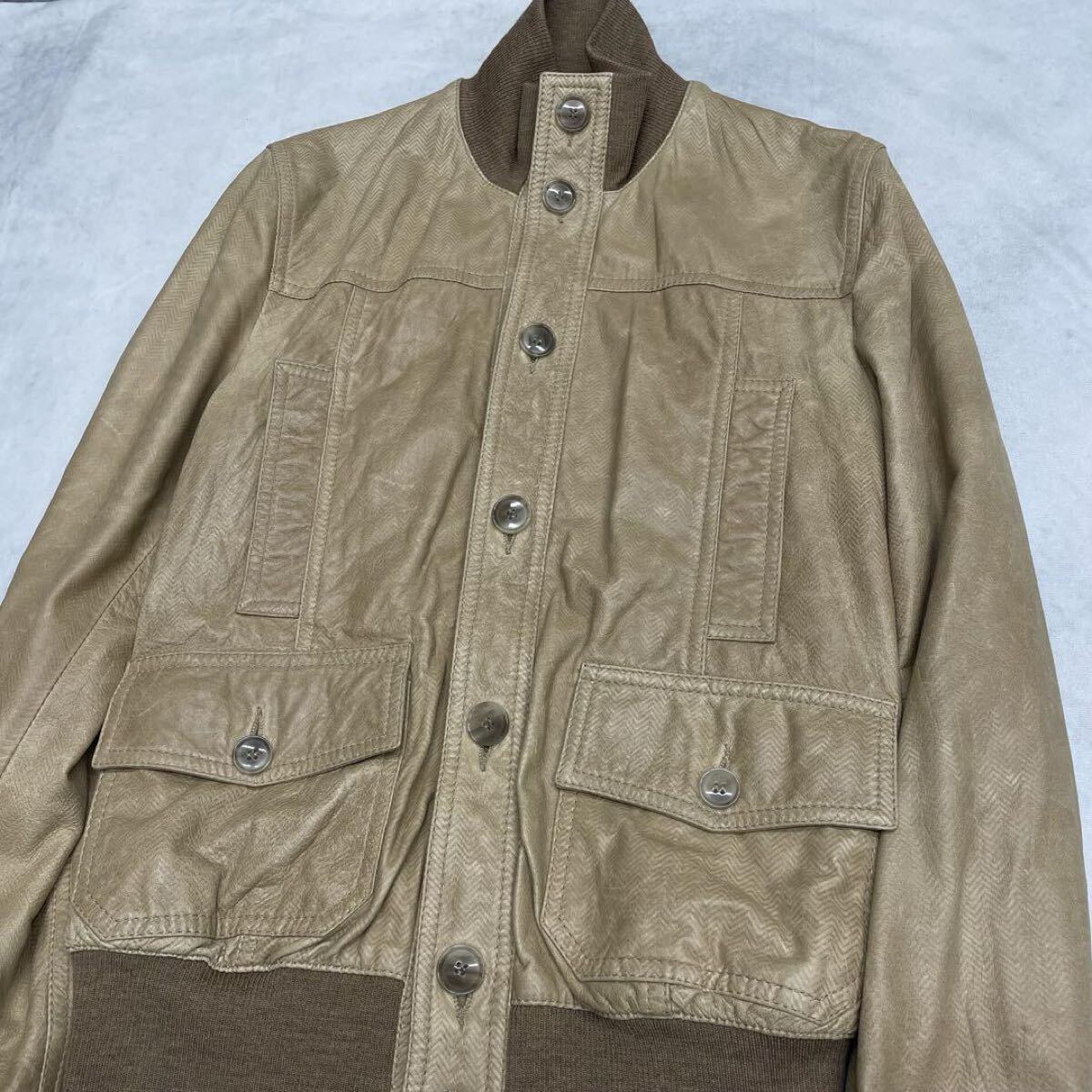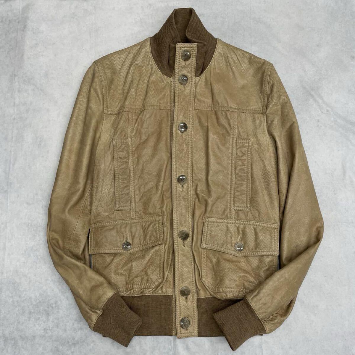 Product name: DOLCE & GABBANA ドライビングブルゾン 羊革 ラムスキン ヘリンボーン キャメル ブラウン 茶 メンズ カジュアル D&G ドルガバ 48