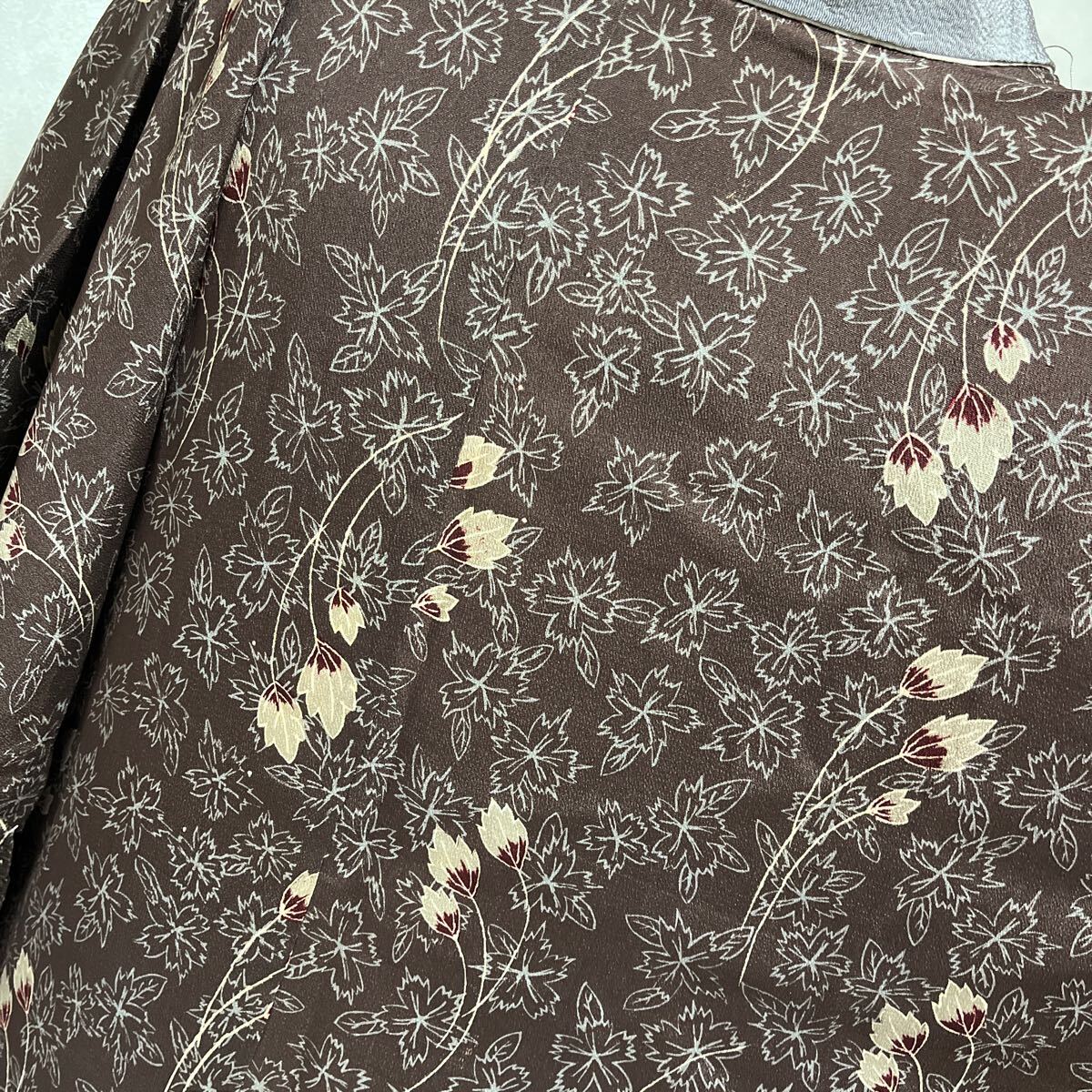 長襦袢 アンティーク 撫子? 縮緬 焦茶 着物 昭和レトロ 大正ロマン モダン リメイク 絹 正絹100% き17-02y