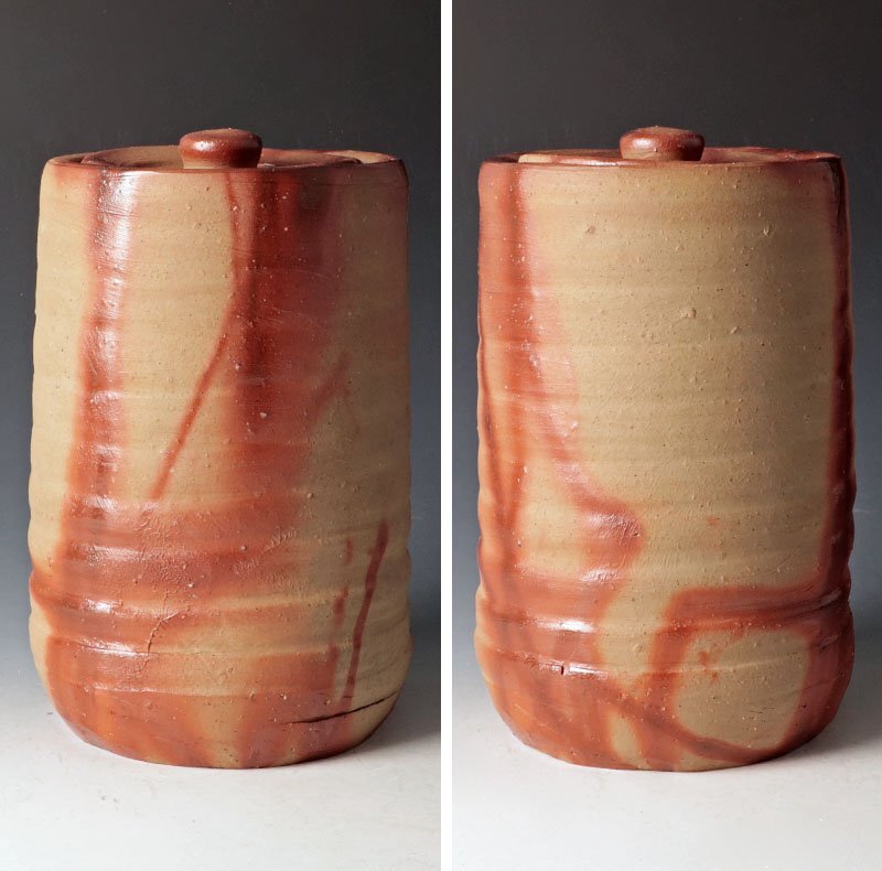備前焼の無形文化財保持者、伊勢崎淳作で備前棒ノ先水指です。備前らしい窯変が見どころの水指です。
