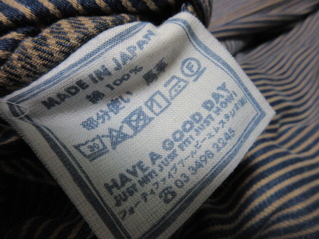 素材はコットン100%、カラーはヒッコリーストライプのインディゴブルーです。