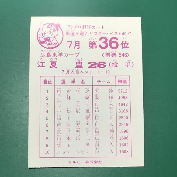 Product name: 1979年 カルビー プロ野球カード 79年 7月 第36位 広島 江夏   LDG31
