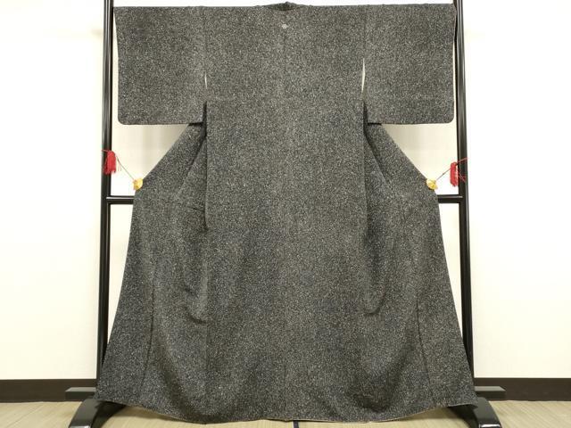 Product name: 平和屋着物■上質な小紋 霞文 たたき染め 黒地 正絹 逸品 AAAT6527ay