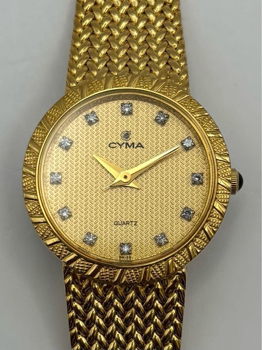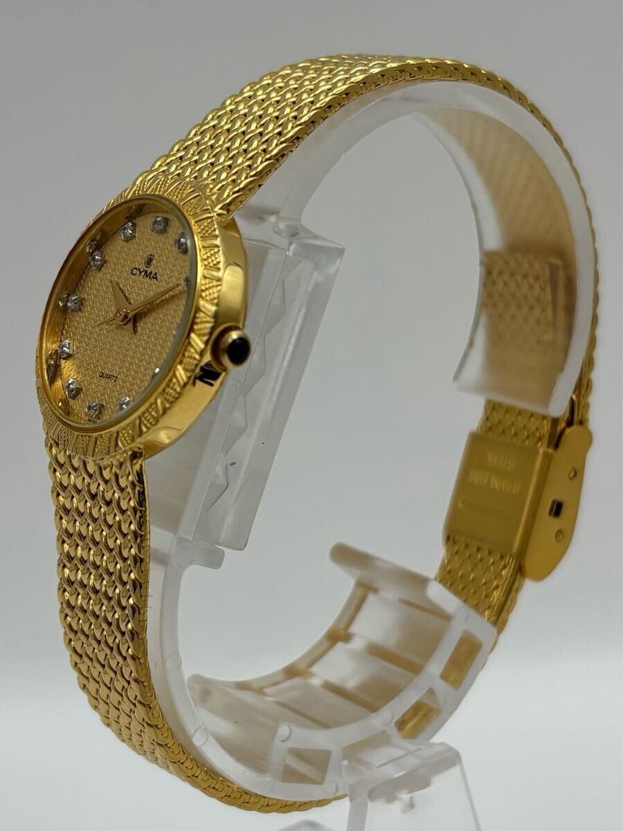 1000円〜 未使用品 動作未確認 CYMA シーマ 810 12P 石付 クォーツ 腕時計 ゴールド 3針 アナログ ラウンド