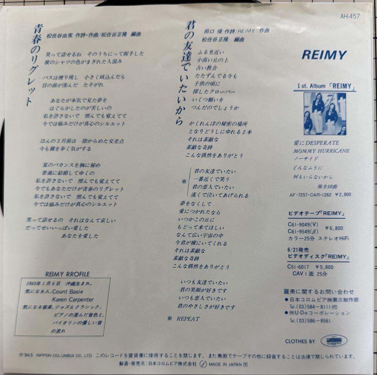 Product name: 即決◆麗美 REIMY/青春のリグレット/君の友達でいたいから (良品盤EP) 松任谷由実、10枚まで送料230円