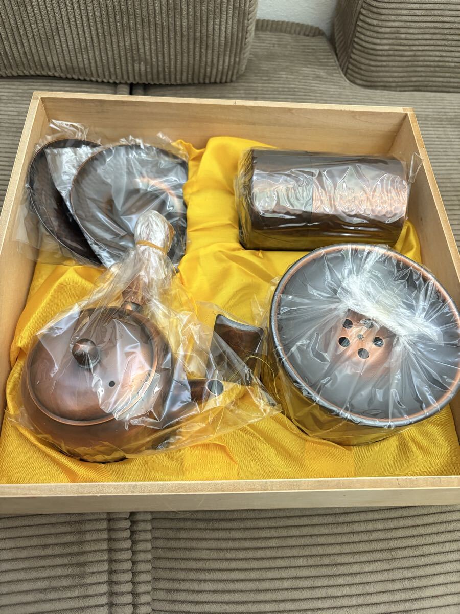 Product name: 純銅製 平安 茶器揃 幸信堂 打ち出し  茶道具 急須 茶托  茶筒 木箱