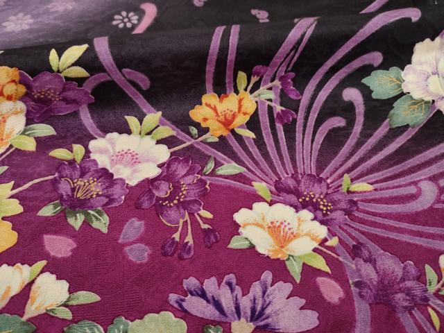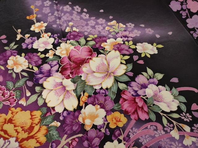 Product name: 平和屋着物▼森英恵・HANAE MORI 振袖 駒刺繍 舞花文 暈し染め 黒地 金彩 正絹 逸品 AAAX9334ck