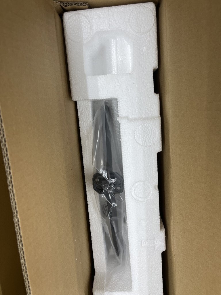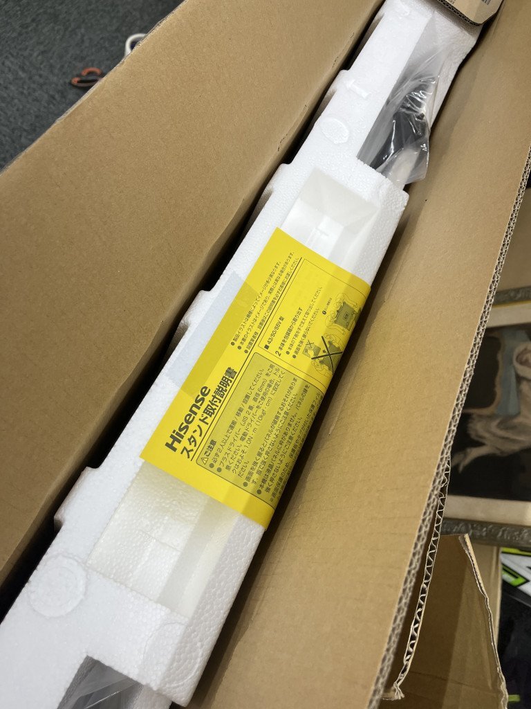 ※上から確認できるのは、テレビ本体・リモコン・脚部分・コード・保証書です。(写真10枚目)