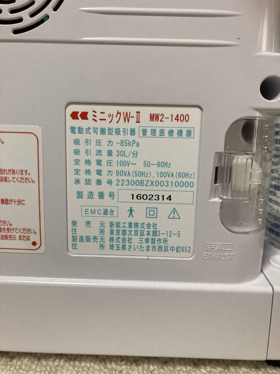 Product name: 新鋭工業 電動式可搬型吸引器  ミニックW-Ⅱ MW2-1400
