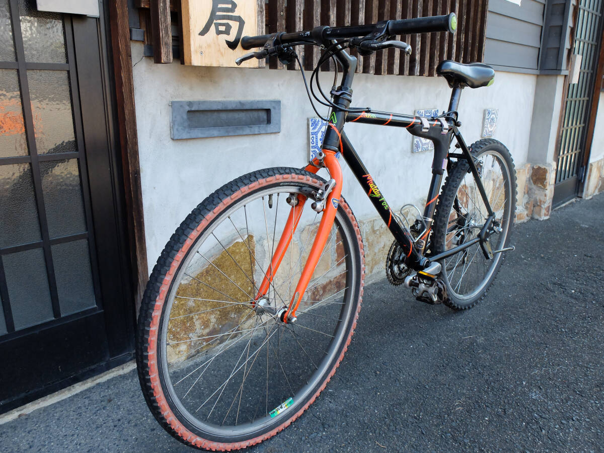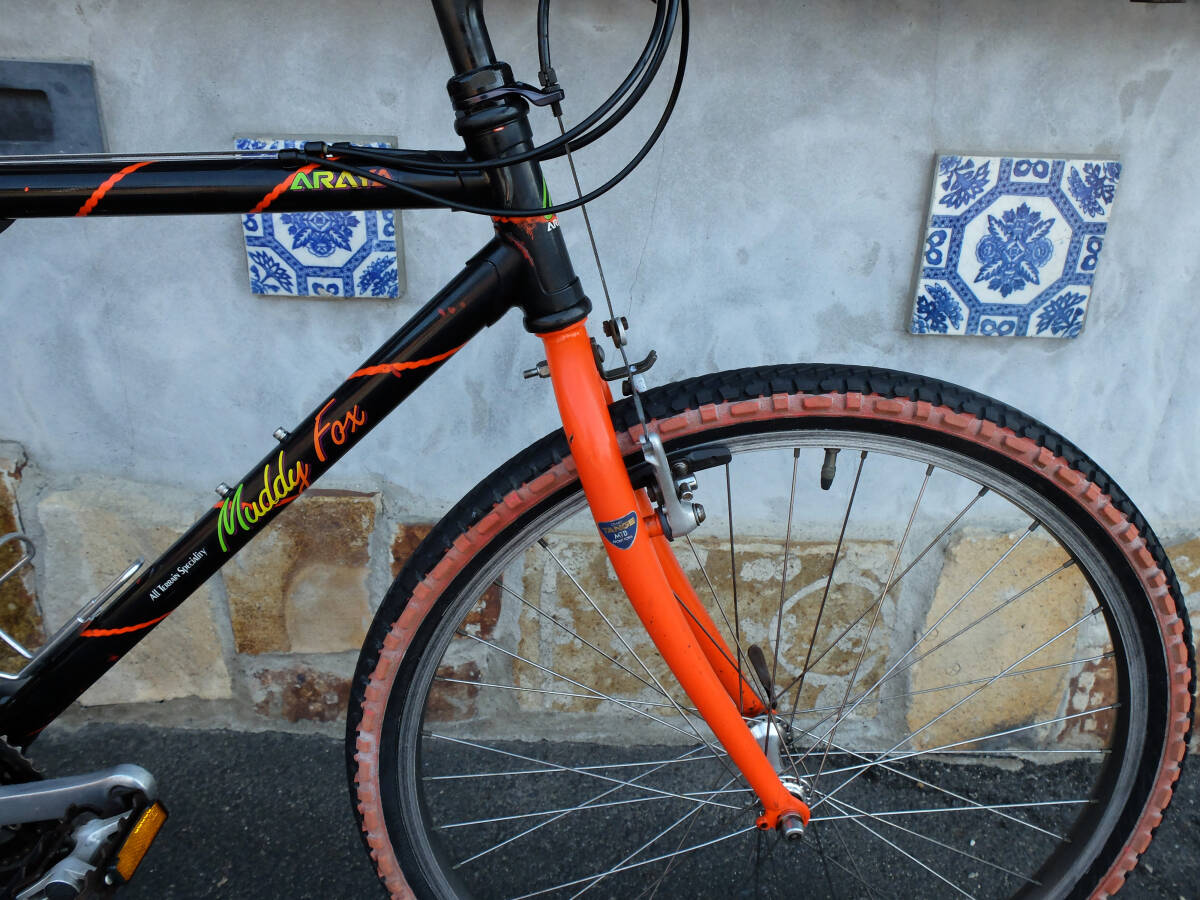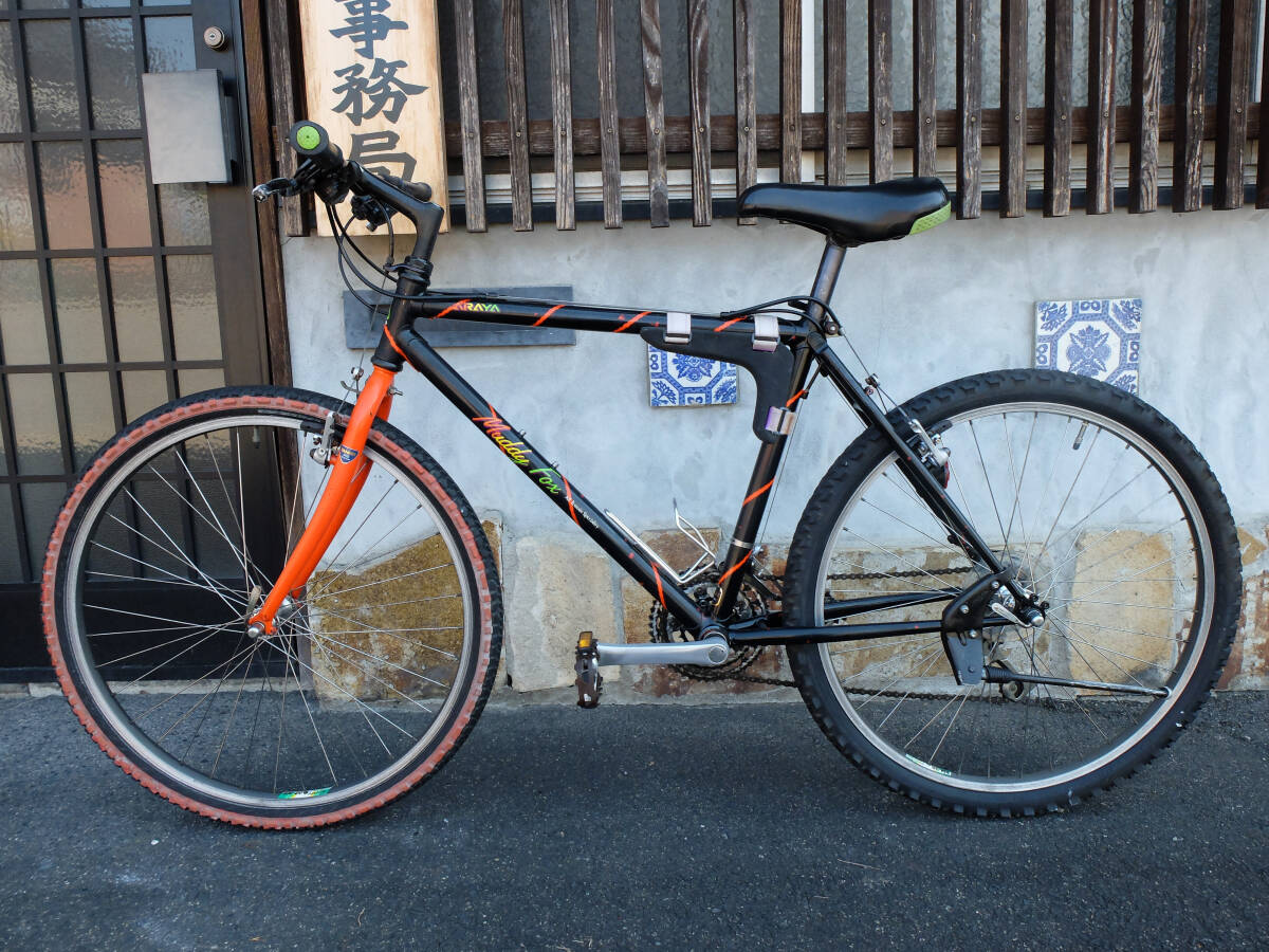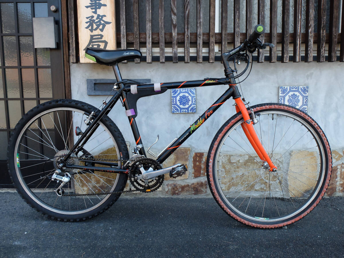 91' Old MTB ARAYA MuddyFox MF26EXP-ODA アラヤ・マディフォックス・O/Sクロモリ・ラグフレーム/黒/オレンジの縄文カラー/Deore DXコンポ