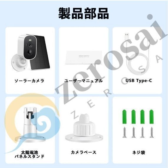 Product name: 防犯カメラ ワイヤレス 屋外 家庭用 2K ソーラー充電対応 マグネット 双方向対話 内蔵 400万画素 監視カメラ 防犯灯 USB充電 AI人体感知