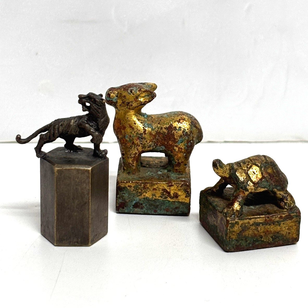 Product name: 【41】1円~ 印台 3本まとめ 金属製 亀:2.2cm 虎:高3.9cm 山羊? 犬?:高3.5cm 中国 金属工芸 錆などあり ハンコ 判子 長期保管