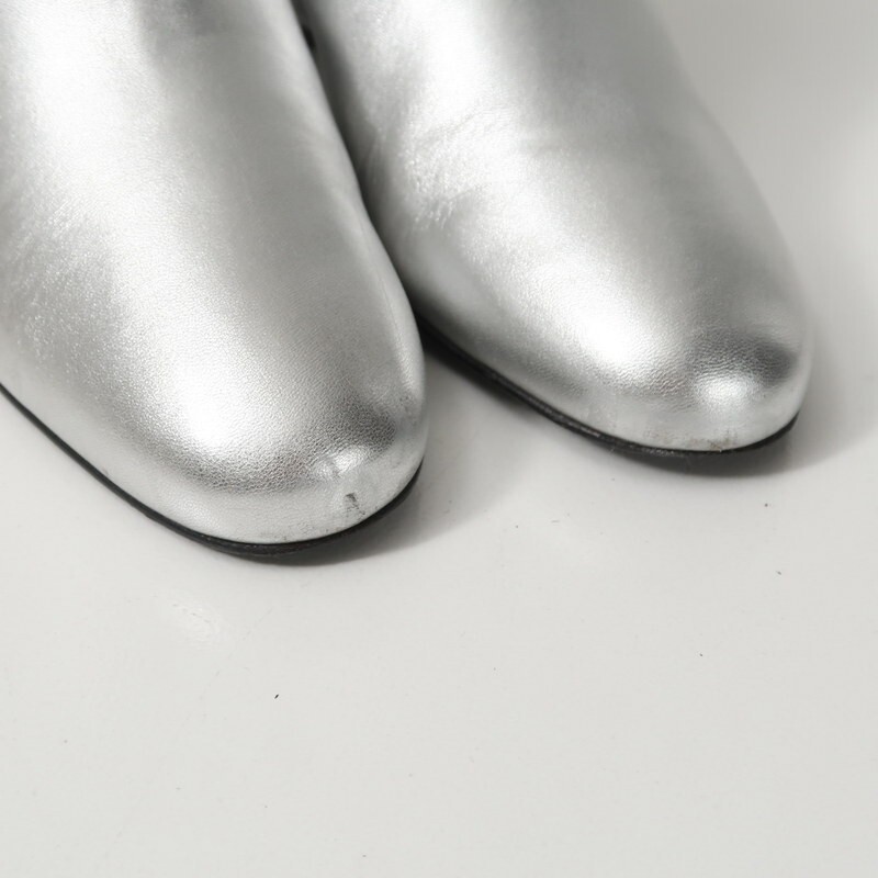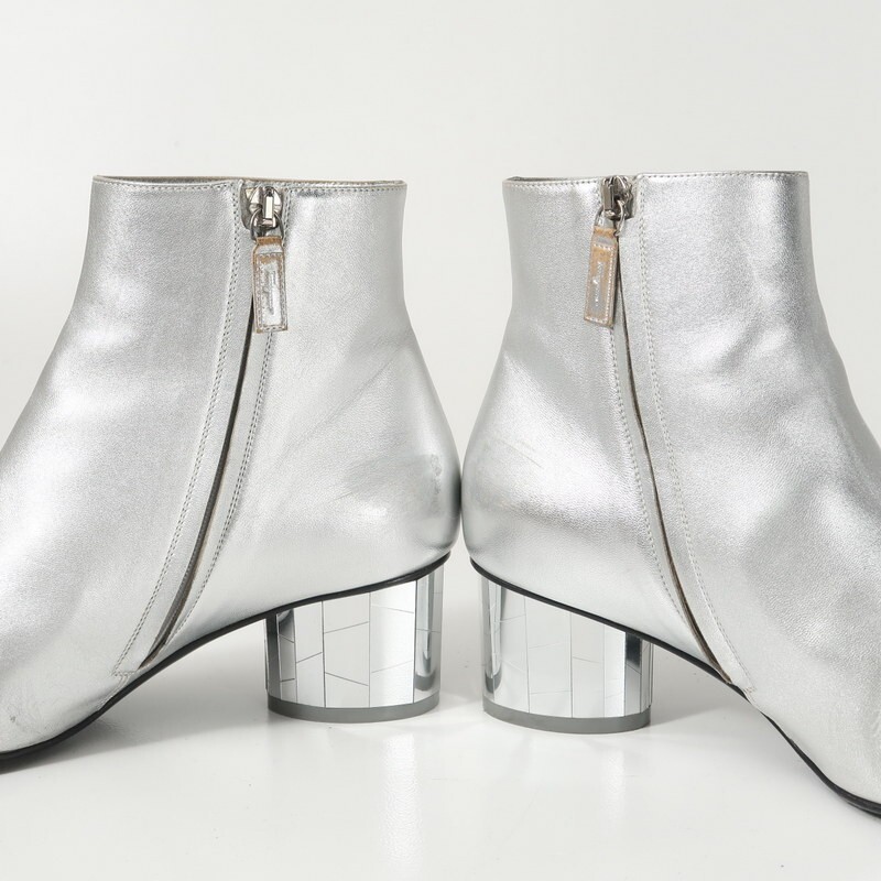 メタリックなシルバーカラーでスタイリングのアクセントとして映えるショートブーツ。