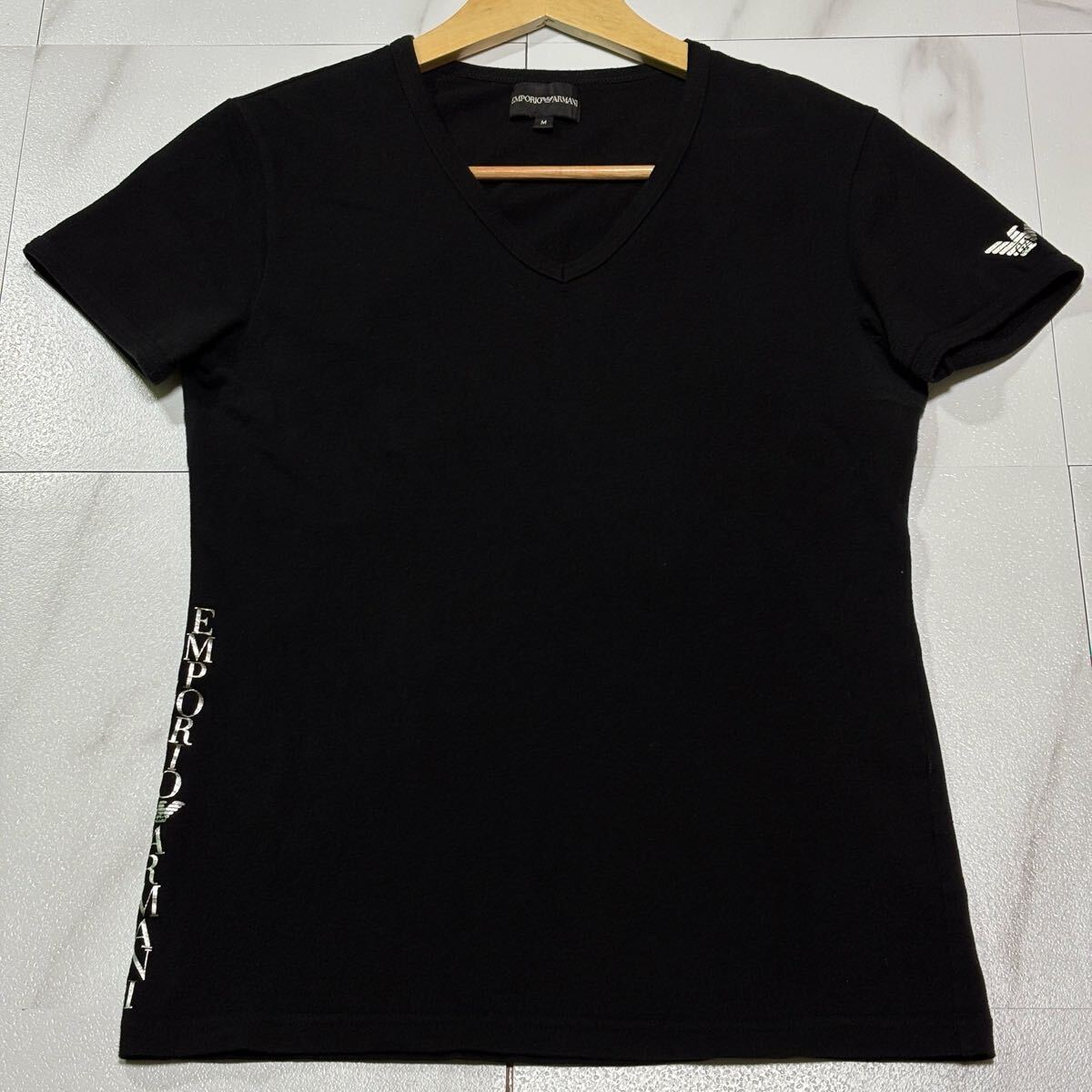 Product name: 美品● EMPORIO ARMANI エンポリオアルマーニ イーグルロゴ 銀ロゴ Tシャツ 半袖 ブラック 黒 Mサイズ