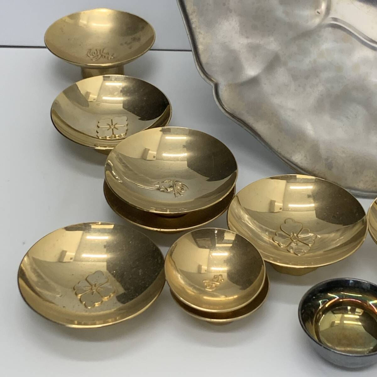Product name: #4151 おまとめ メッキ盃 24KGP 金杯 銀杯 酒器 金メッキ 盃 黄金十二支盃 カクタスゴールド 総重量 約1700g(袋込)