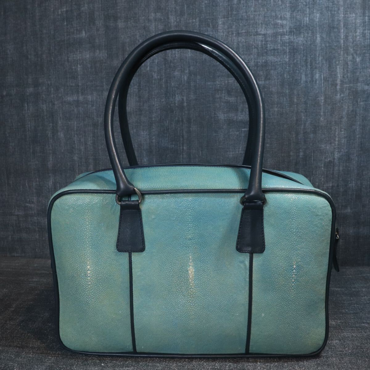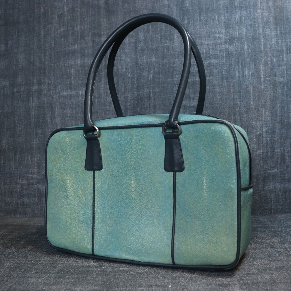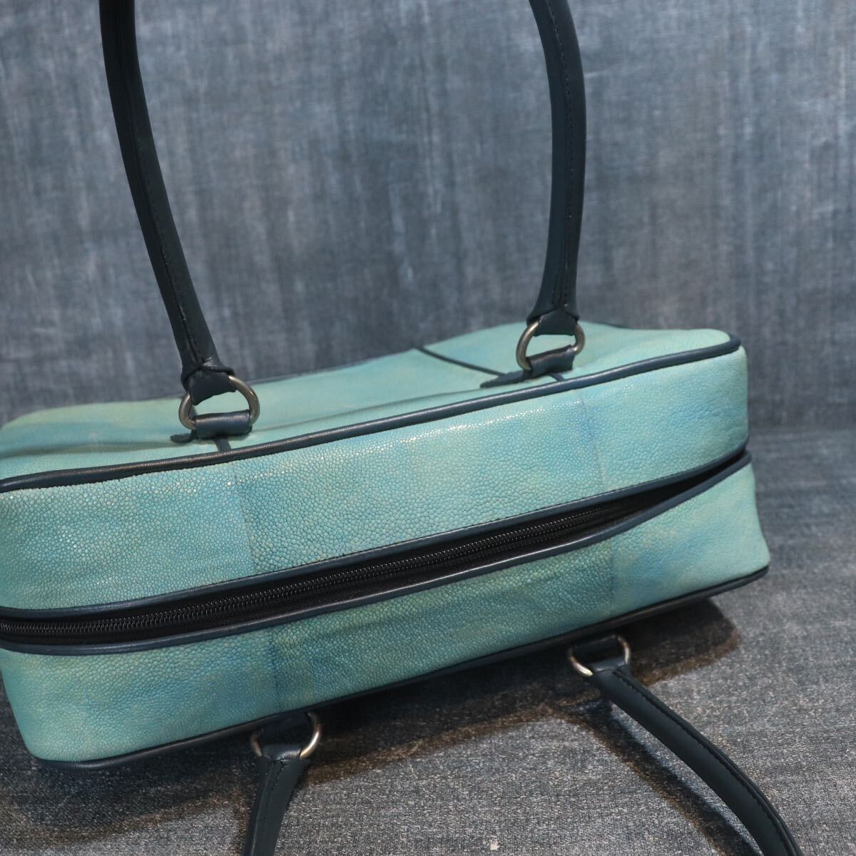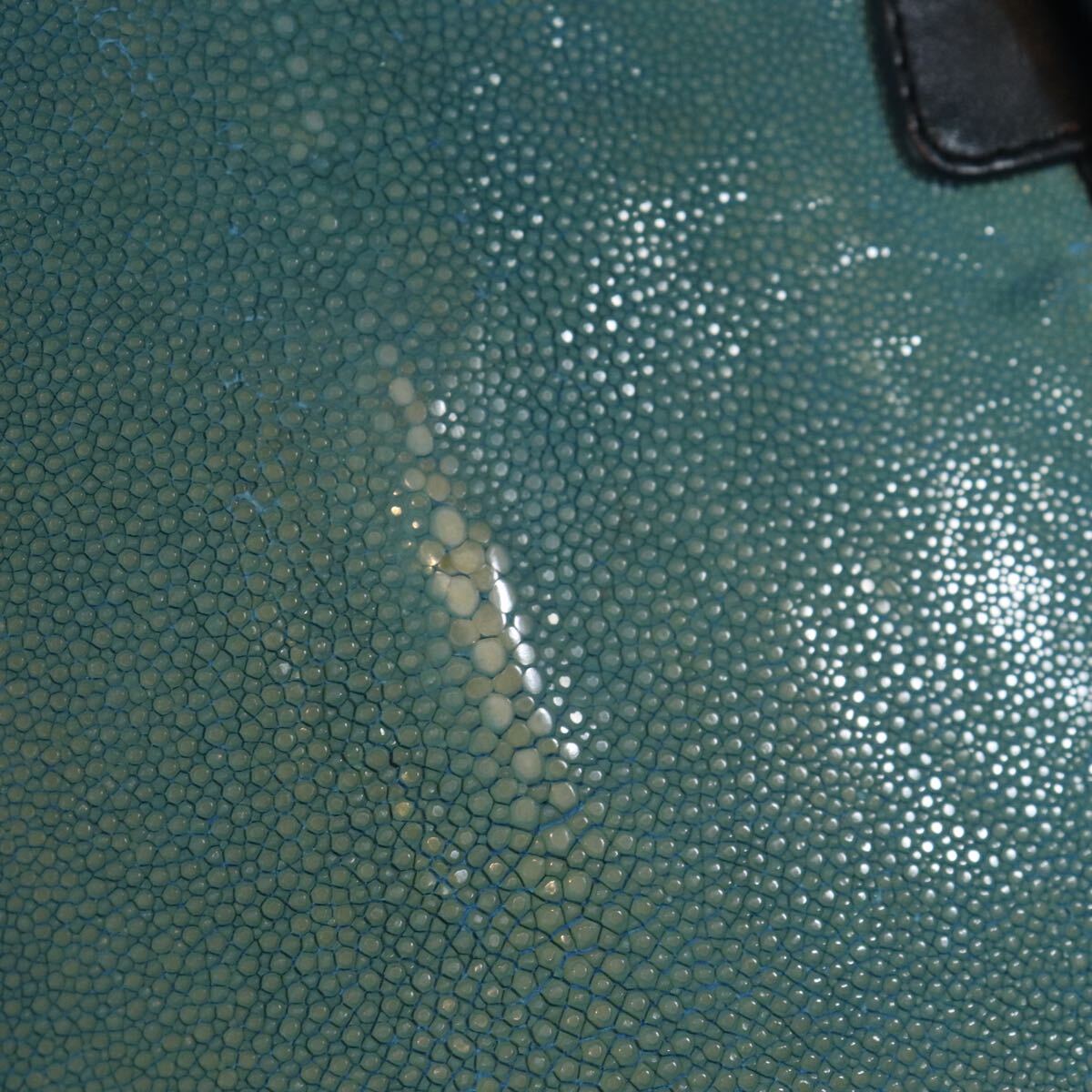 1円スタート 希少 エイ革 スティングレー ガルーシャ スカイブルー 水色 多頭使 ハンドバッグ genuine stingray 1スタ
