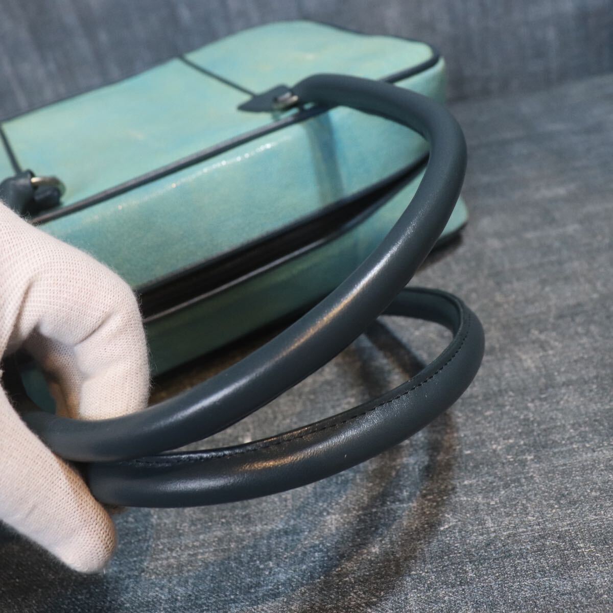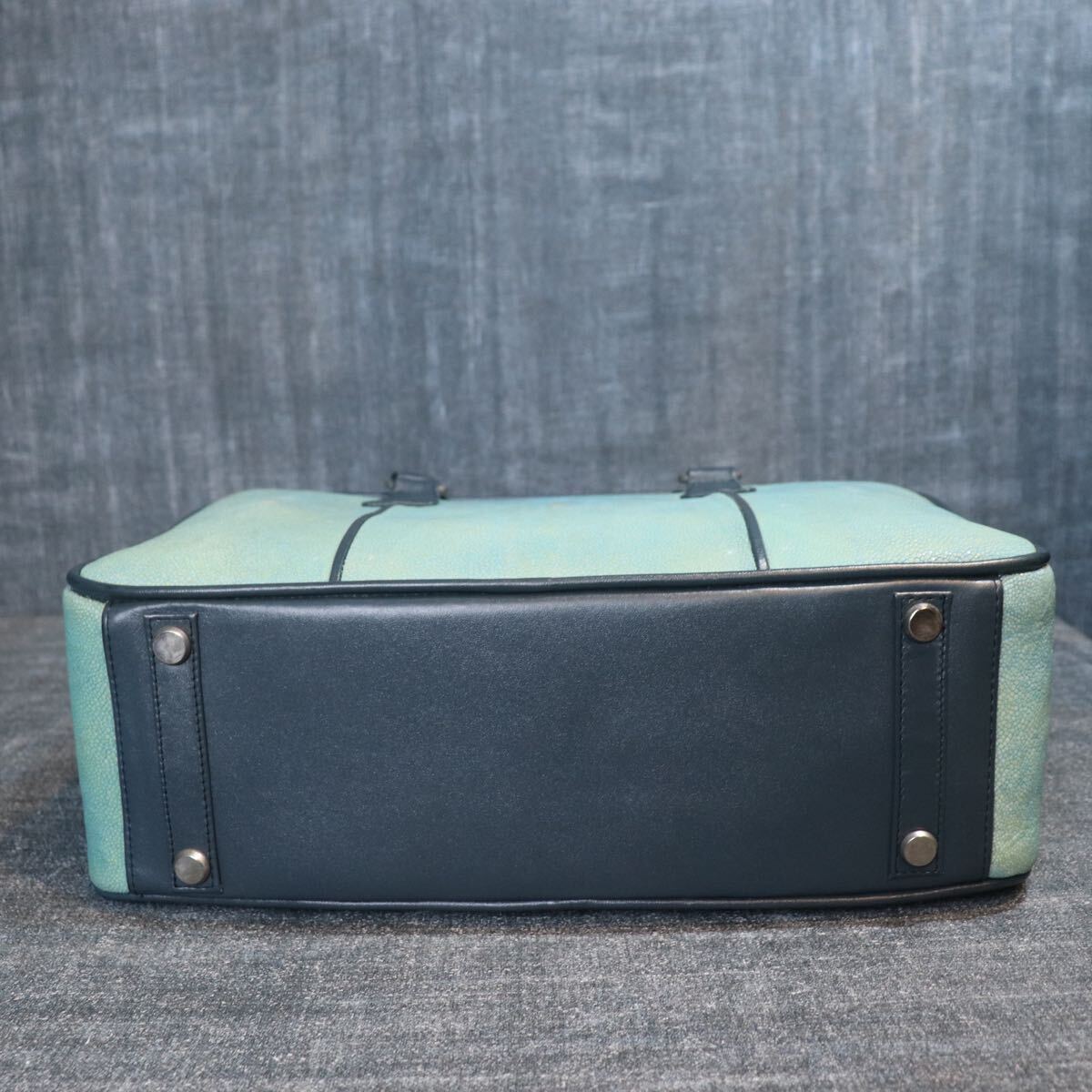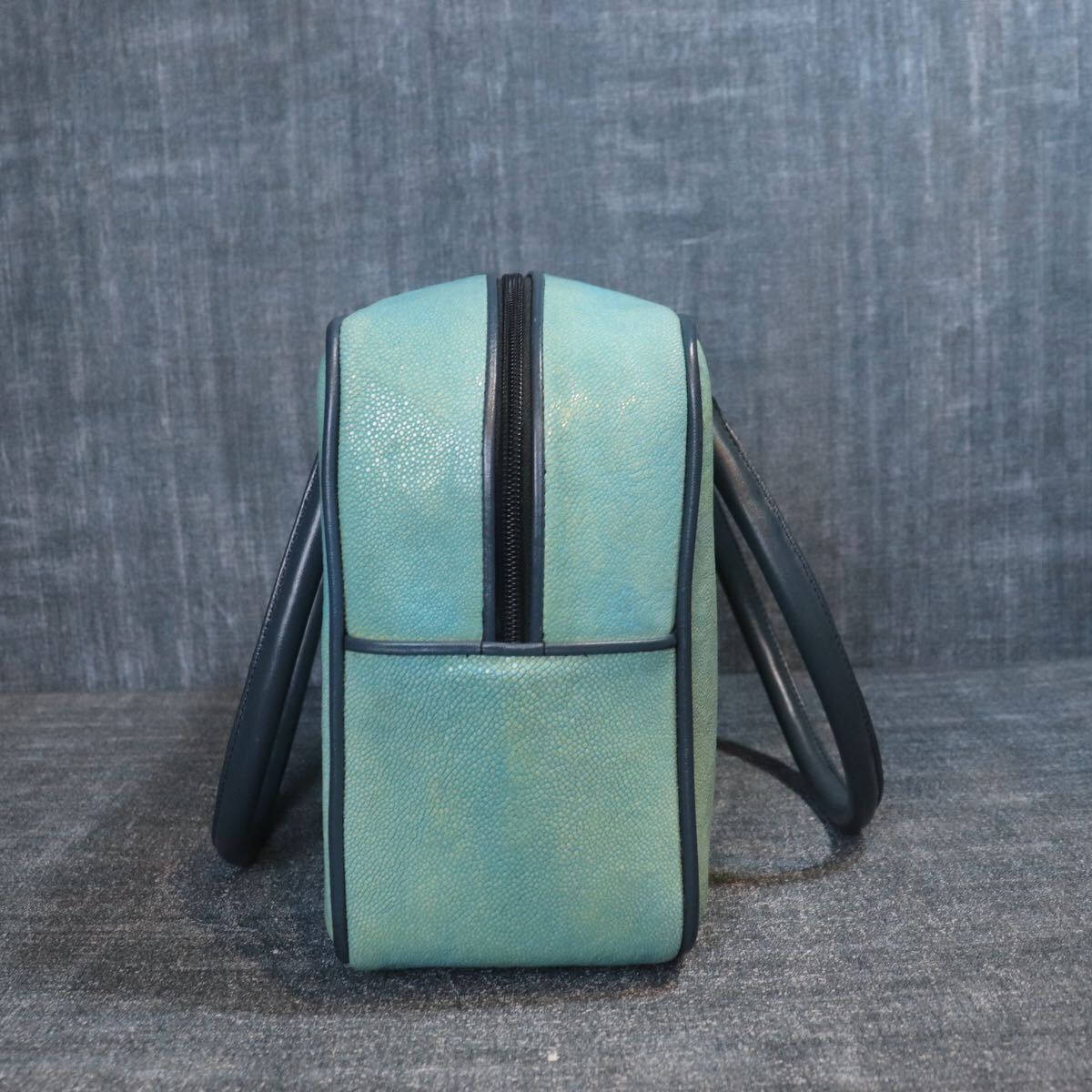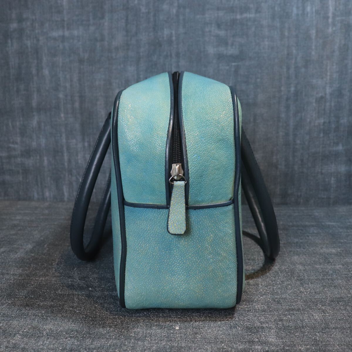 1円スタート 希少 エイ革 スティングレー ガルーシャ スカイブルー 水色 多頭使 ハンドバッグ genuine stingray 1スタ