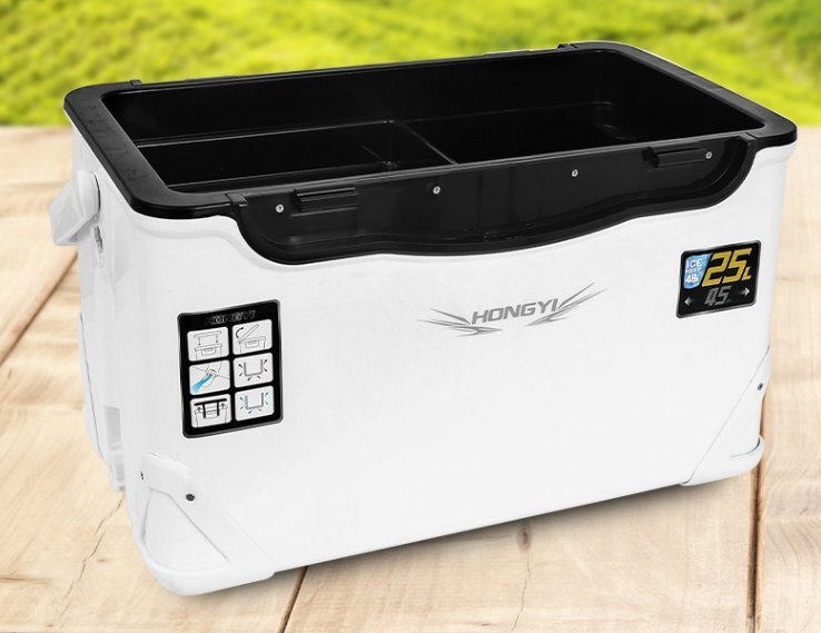 Product name: 釣り用 クーラーボックス 小型25L ふた両開き 座れる頑丈ボディ 防水 保温保冷 ハンドル/肩ベルト付き 保冷力24-48h ブラック