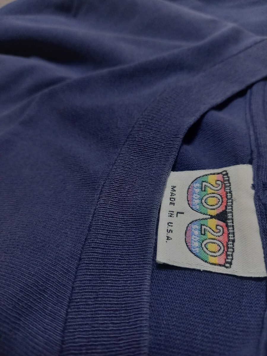 ビンテージ古着屋で購入した80s~90s USA製 ポケット フェード ネイビー ナス紺 無地 ビンテージ シングルステッチ ヘビーコットン Tシャツ sizeLです。肩幅約51身幅約57着丈約67袖丈約23センチです。状態はビンテージなので多少の使用感などありますが、ビンテージフェード感が出て素晴らしくカッコいいです。ダメージなどは特に見当たらないのでビンテージ古着にしては良い方かと思います。必ず当方の自己紹介欄を見てから質問、入札、落札してください。