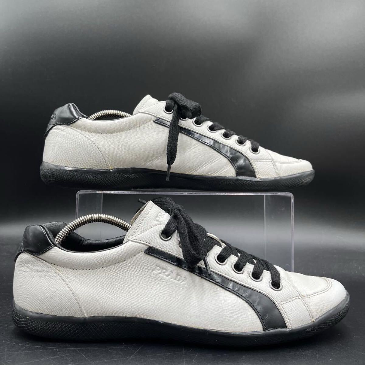 1円 【美品】 PRADA プラダ 【圧倒的高級感】 メンズ サフィアーノ サイドロゴ サイドライン ローカット スニーカー シューズ 靴 27cm相当