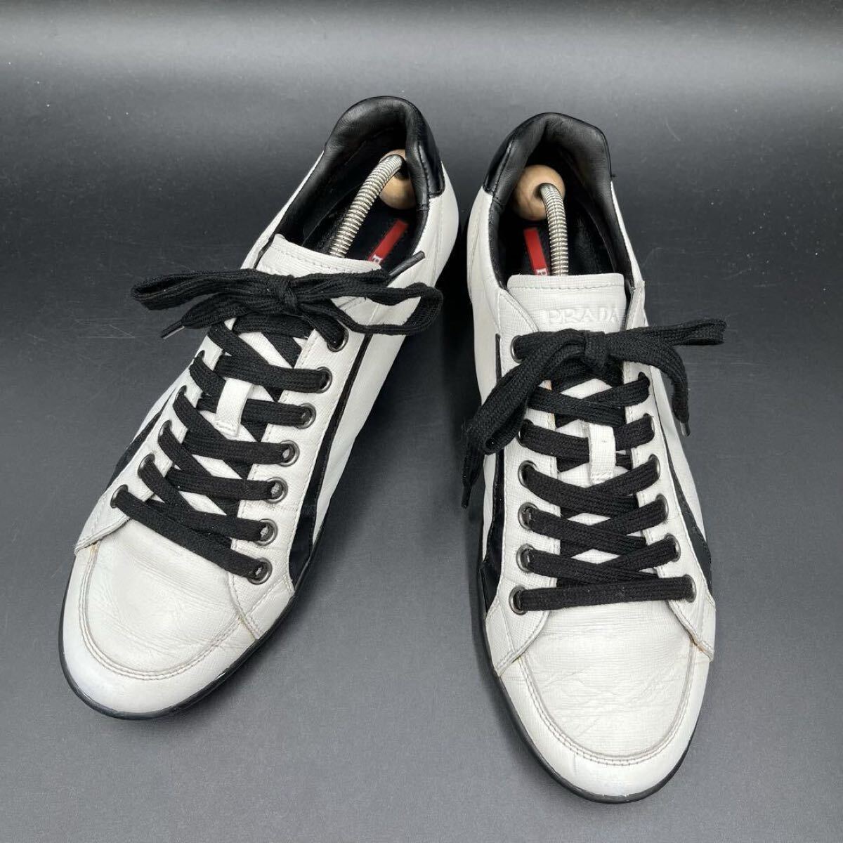Product name: 1円 【美品】 PRADA プラダ 【圧倒的高級感】 メンズ サフィアーノ サイドロゴ サイドライン ローカット スニーカー シューズ 靴 27cm相当