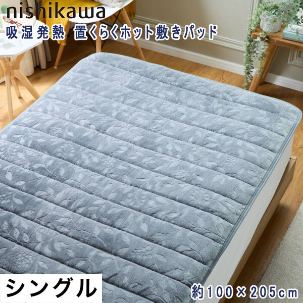 送料300円(税込)■pf028■西川 吸湿発熱 置くらくホット敷きパッド シングル シルバー 7900円相当【シンオク】