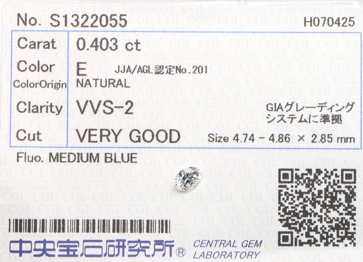 VVS2!0.403ct  天然ダイヤ  E(ナチュラルカラー)VERY GOOD