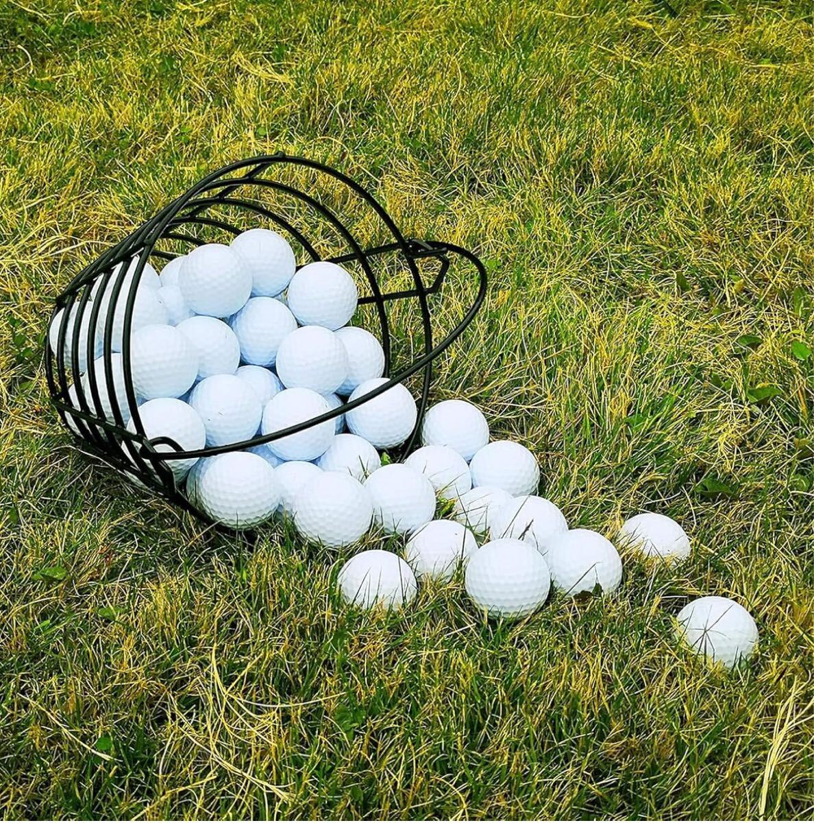 1円スタート K ZNLAKU ボール かご 練習用 ボールケース 収納バスケット ハンドル付き スチールワイヤ ー素材 フィットブラック ゴルフ