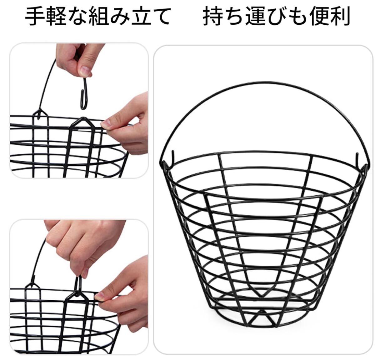 Product name: 1円スタート K ZNLAKU ボール かご 練習用 ボールケース 収納バスケット ハンドル付き スチールワイヤ ー素材 フィットブラック ゴルフ
