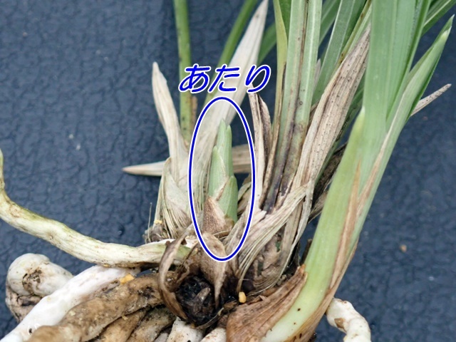 【雪姫(ゆきひめ)】 … 産地不明。水仙弁・平肩咲きの白色素心花。葉は大葉性の中垂葉。仮名。