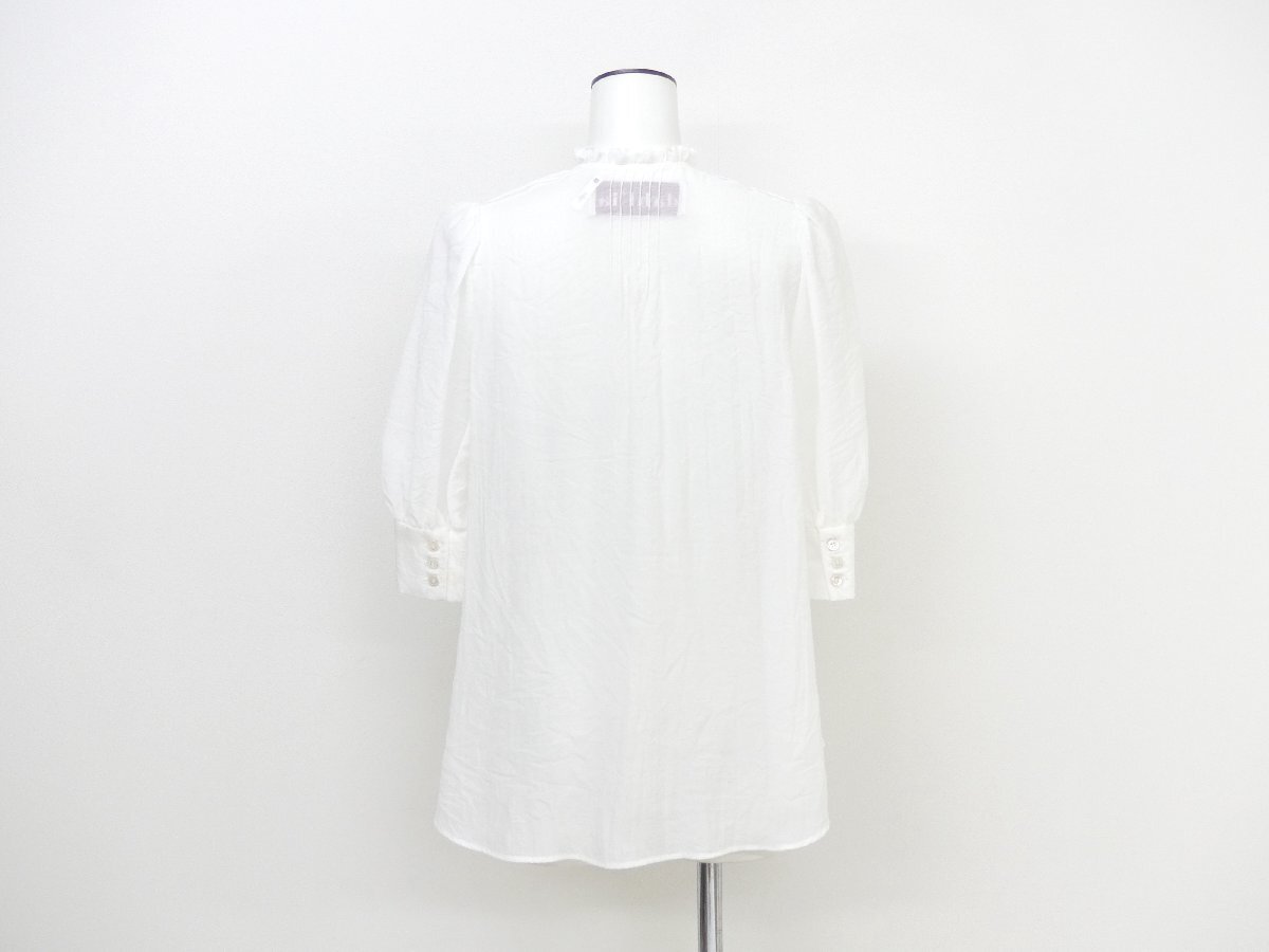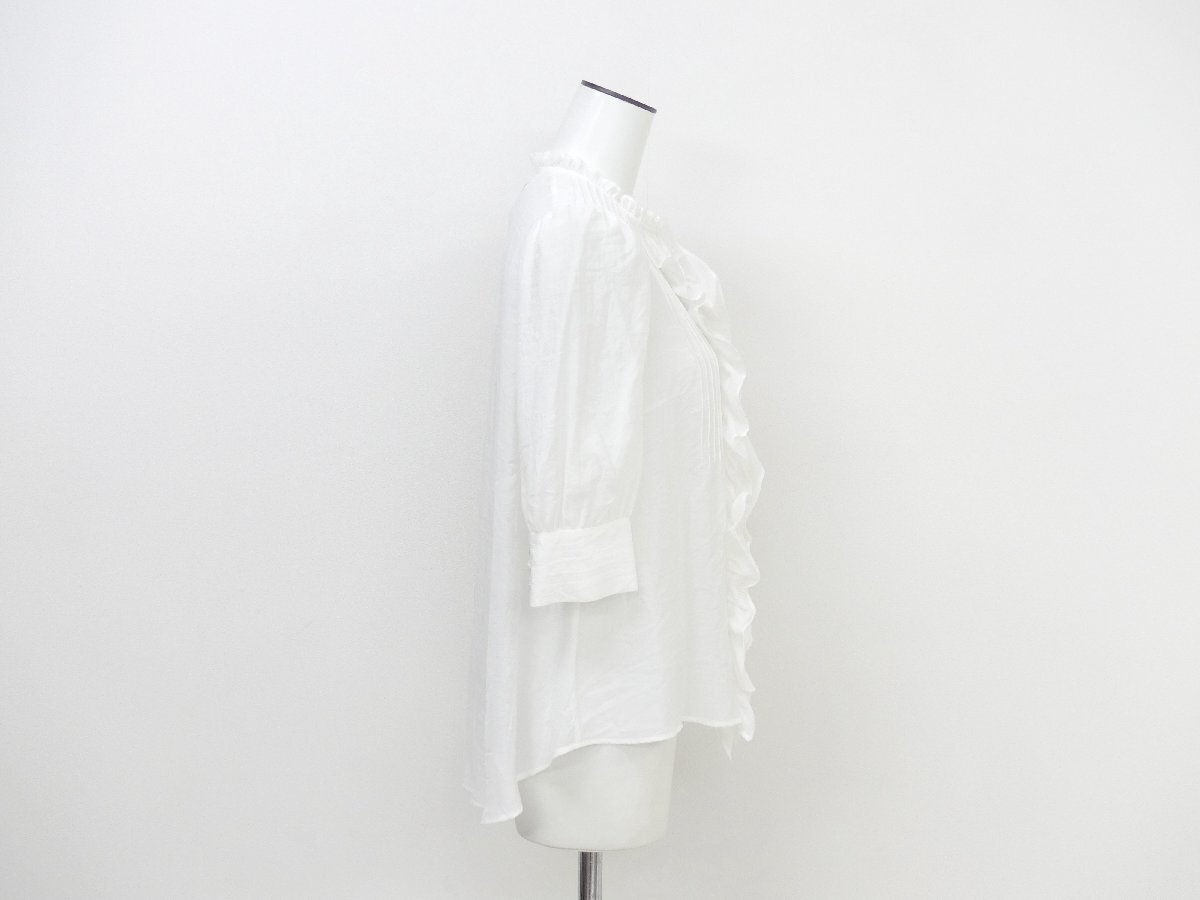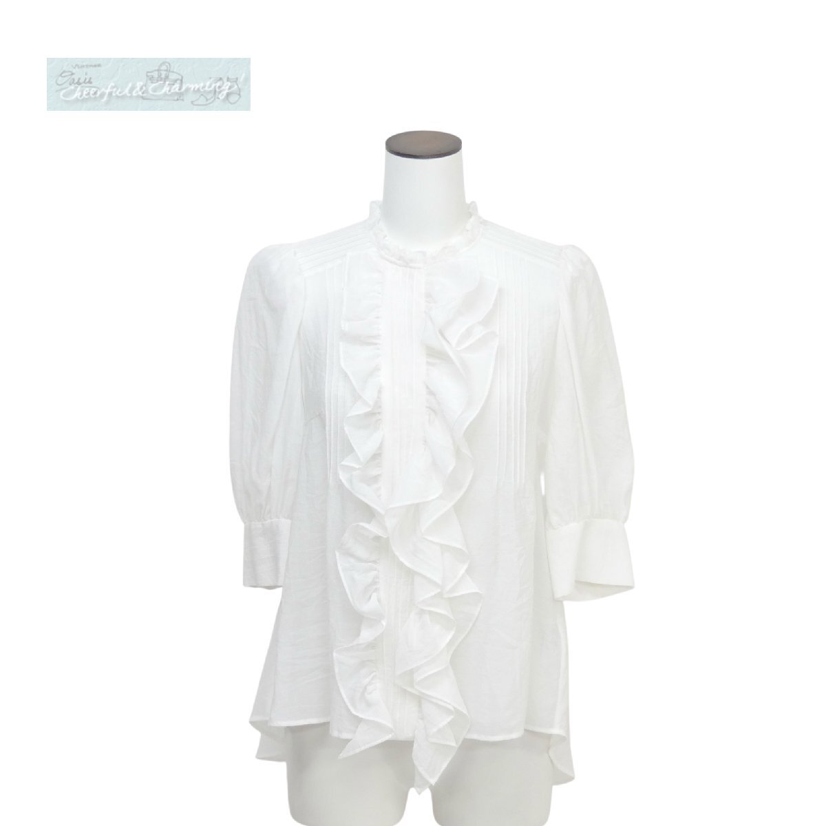 Product name: dahl'ia ダリア シアーフリルブラウス F ホワイト 5分袖 ピンタック レーヨンBLEND UNITED ARROWS取扱い