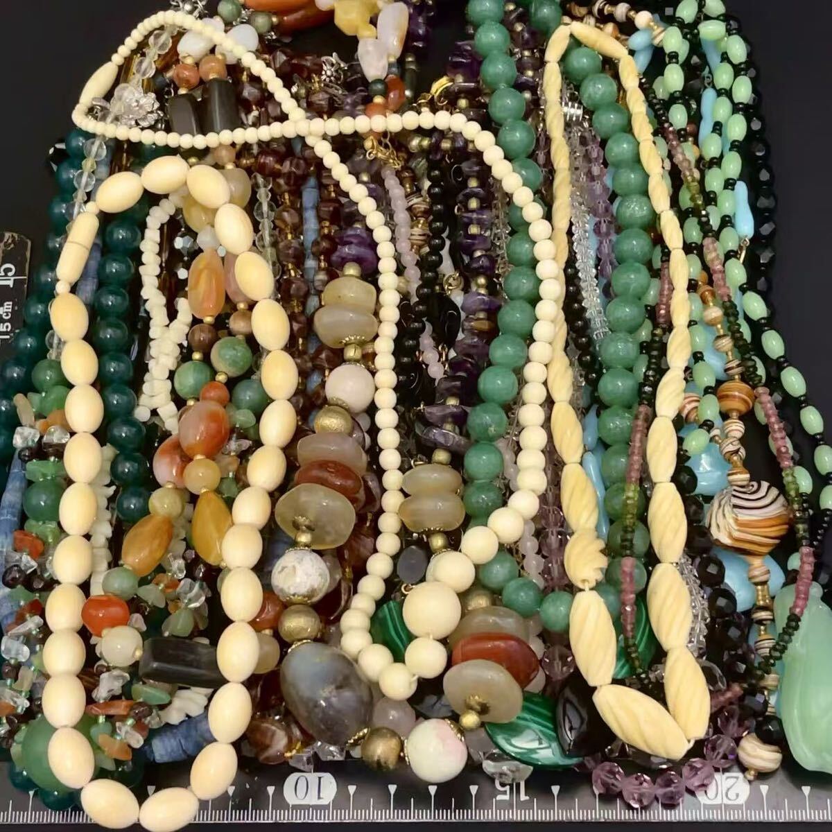 1円 パワーストーン 天然石ネックレス 30本まとめ 大量セット 天然材/翡翠/珊瑚/トルマリン/アメジスト/瑪瑙/水晶等 まとめて