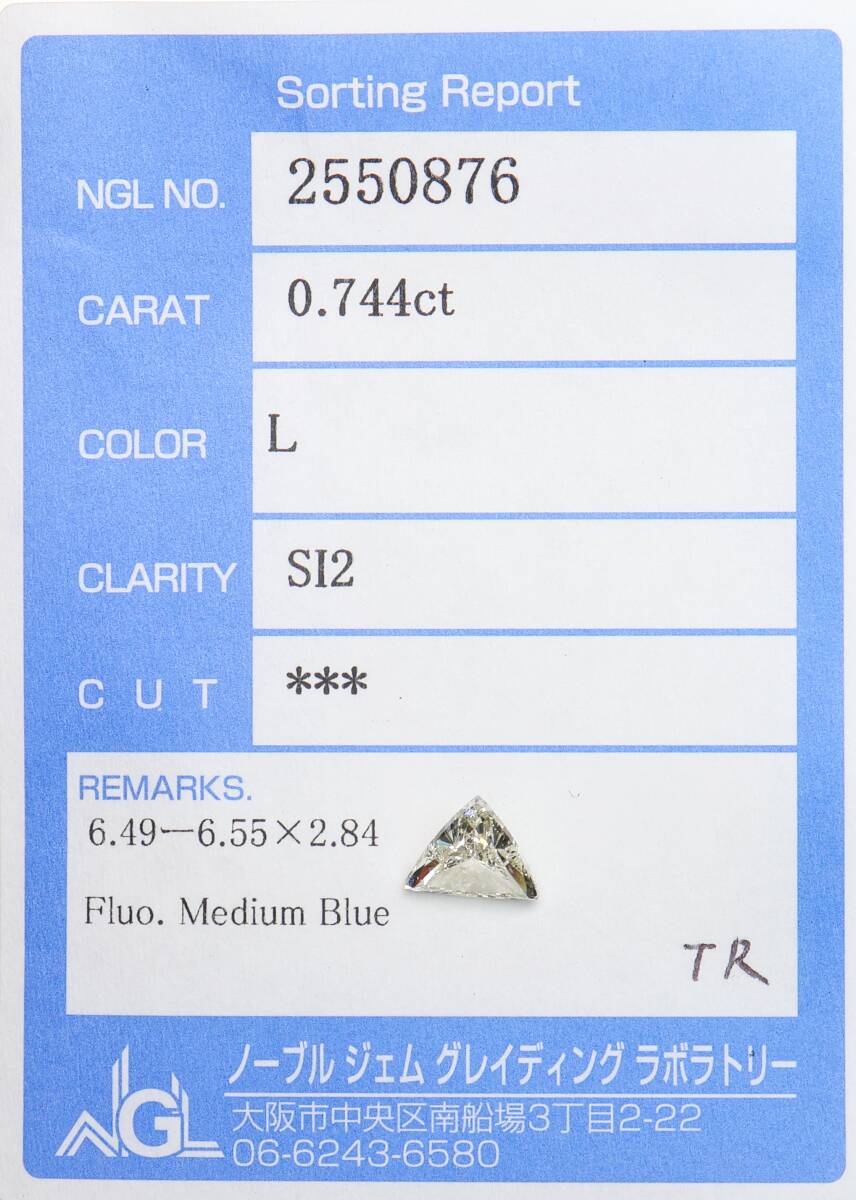 Product name: 【100円~】0.744ct 天然ダイヤ L(ナチュラルカラー)SI2 TR