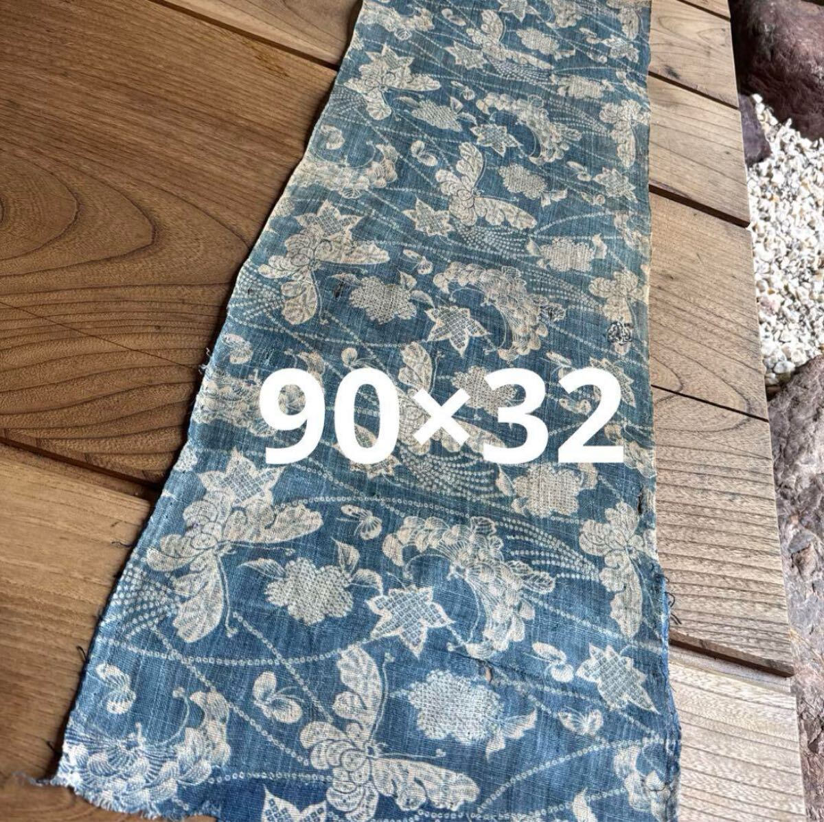 Product name: 蝶々◆麻◆型染め◆珍品◆90×32㎝◆アンティーク◆ハギレ◆ボロはぎれ◆リメイク◆古布◆時代物◆