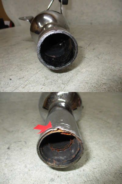 状態 サビが多く、出口に加工跡?(画像10枚目参照)や出口付近に変形(画像9枚目の下段参照)のある中古の純正のものです。