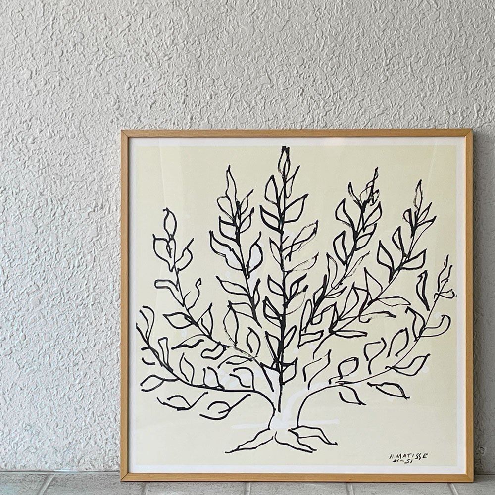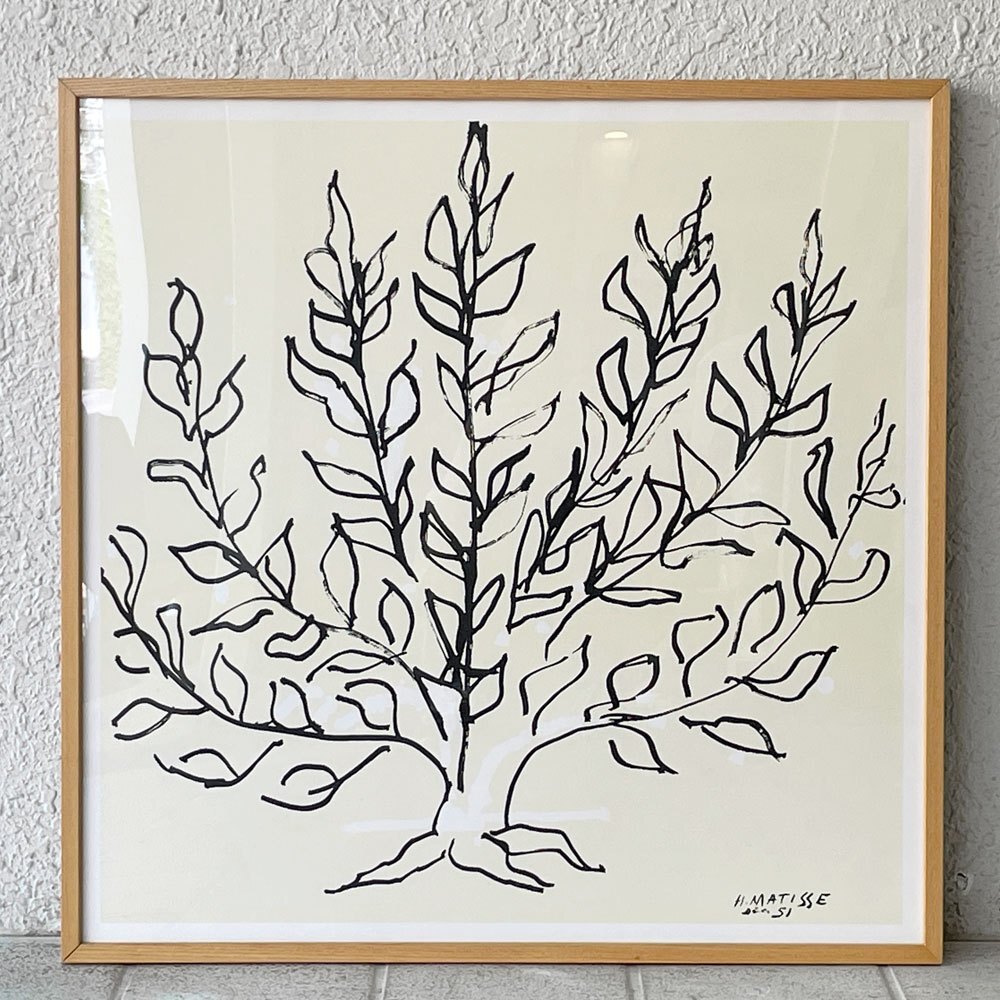 1951年に発表されたこちらは晩年の作品『 低木 』のリトグラフポスター。激しい筆致や色彩が特徴の一つと呼べる野獣派の表現や、切り絵技法を用いたシリーズとも異なり、単色のハンドドローイングで描かれたシンプルな画風は、美術品本来の評価は勿論、暮らしに溶け込む優れたインテリア性を内包し、IDEE等のインテリアショップで取り扱われる等、一般層にも高い人気を集めています。