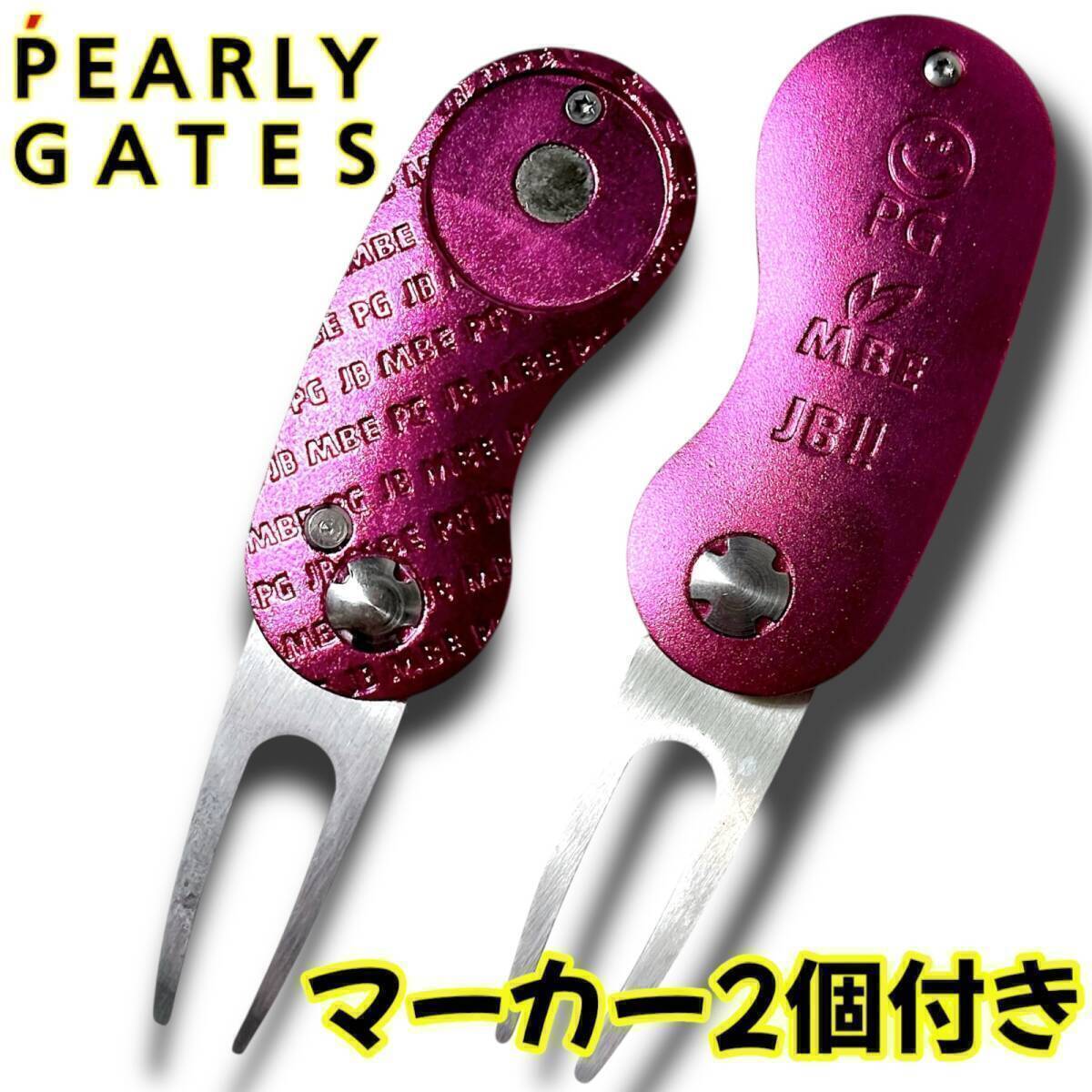 新品 PEARLY GATES パーリーゲイツ マスターバニー ジャックバニー フォーク&マーカーセット ワンプッシュオープン仕様 グリーンフォーク ゴルフグッズ GOLF スポーツ プレゼント 記念品 ギフトにも最適 090 ピンク系 (マーカー2個はランダムとなります)