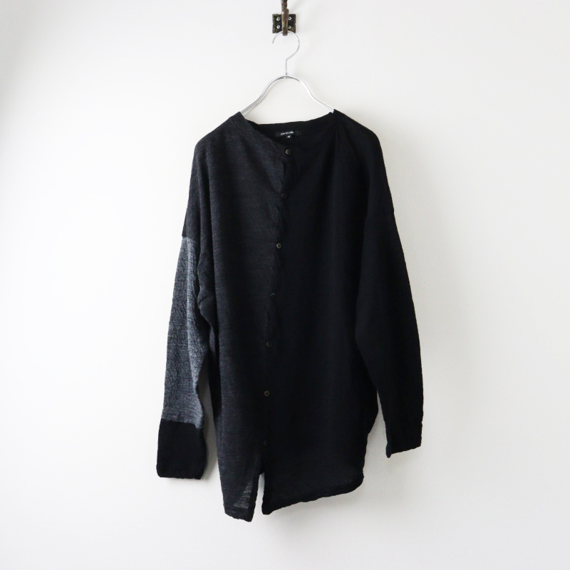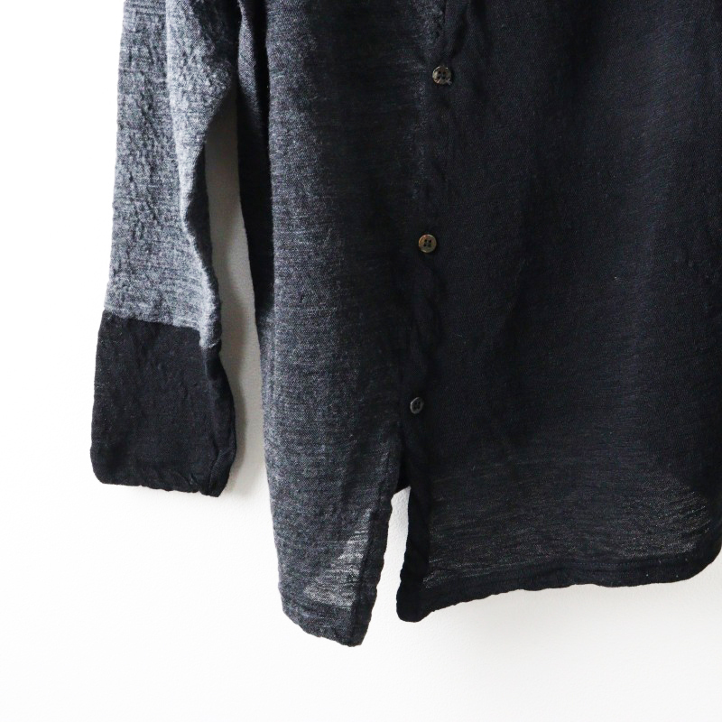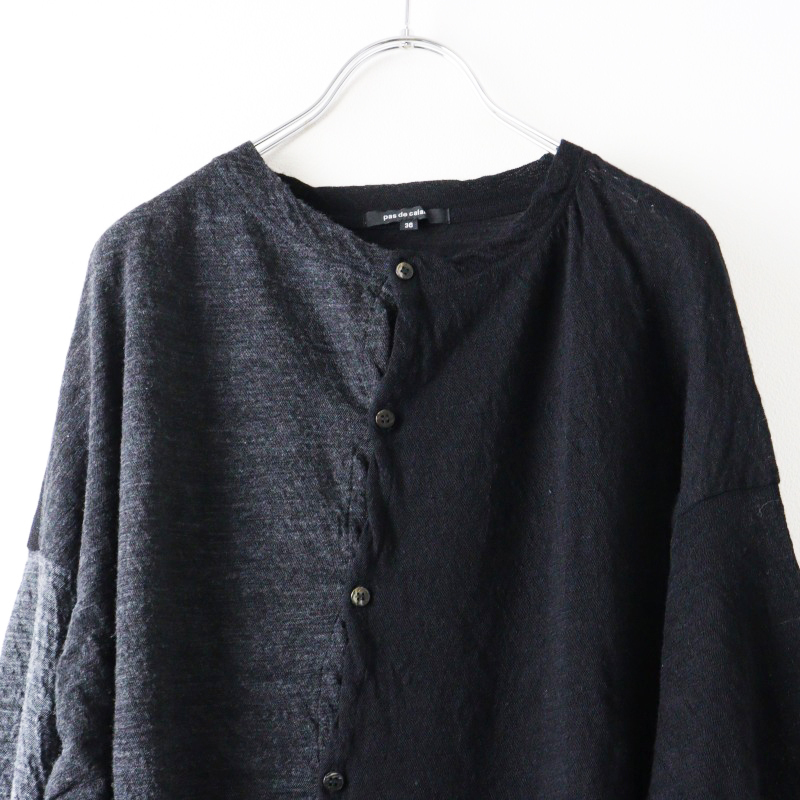 2023AW 定価2.5万 パドカレ pas de calais アシンメトリーカラーブロックカーディガン 36‖ブラック ウールガーゼ素材 【2400014561005】