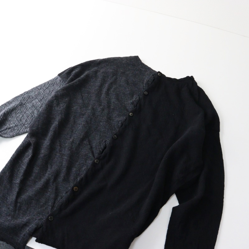 Product name: 2023AW 定価2.5万 パドカレ pas de calais アシンメトリーカラーブロックカーディガン 36‖ブラック ウールガーゼ素材 【2400014561005】