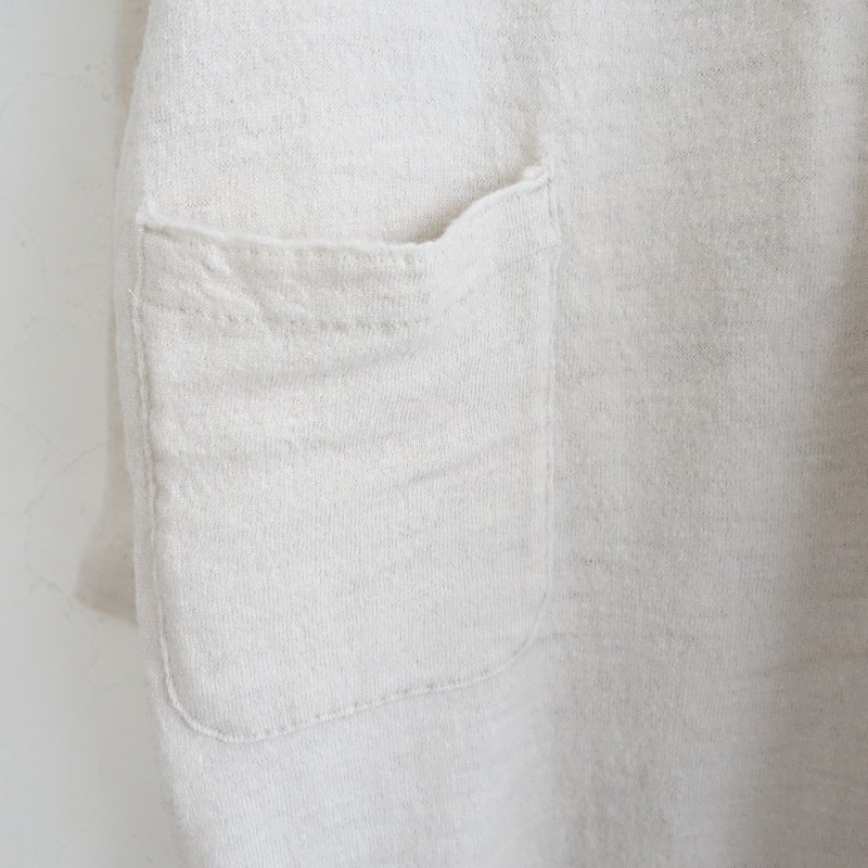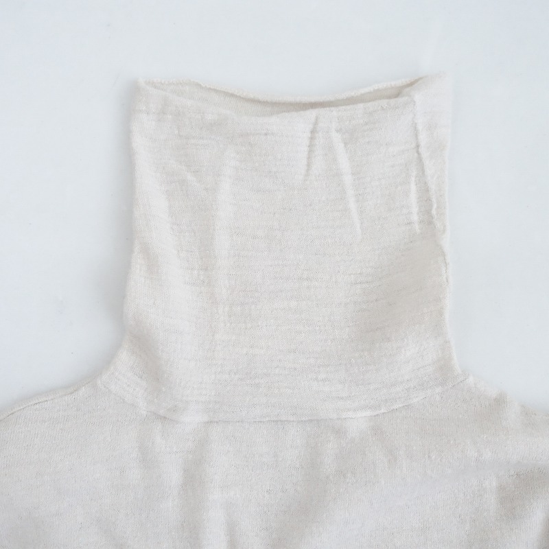 45RPMのウールニットタートルネックワンピースです。カラーはエクリュで、ライトなニット素材で仕立てられております。タートルネックデザインで、縁周りはカットオフ仕様、両腰にパッチポケットが付いております。