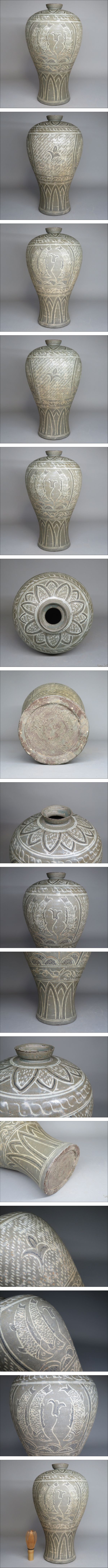 Product name: 【李朝/高麗 特集出品】高麗青磁象嵌魚文梅瓶 朝鮮古陶磁器/高麗時代 朝鮮美術lot:72708