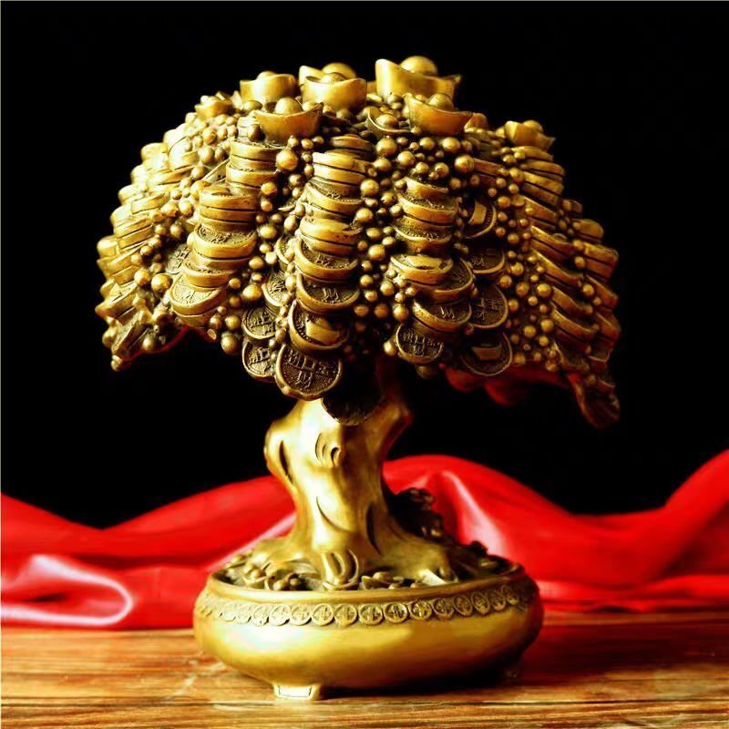 招財樹 純銅の金のなる木の置物
