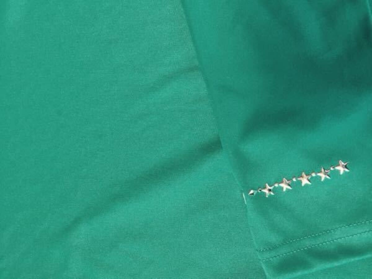 長袖の方は、胸のあたりに2箇所、直径4mmほどの汚れが少しございます。